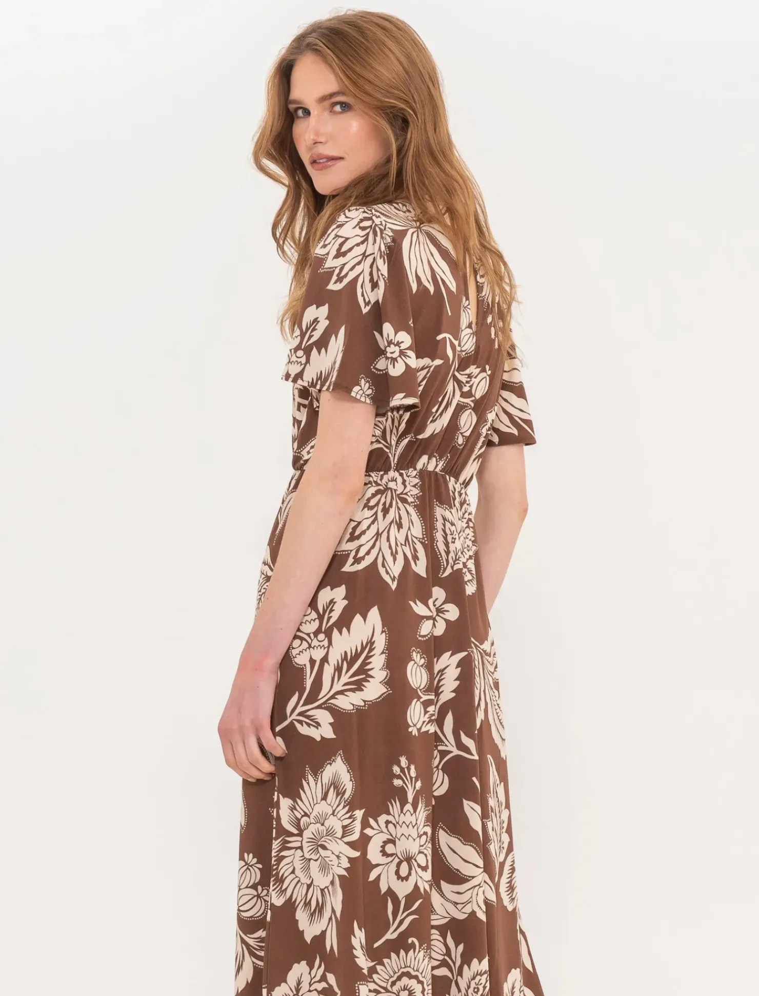 Piazza Italia Vestito lungo in tessuto crepe stampato con scollo tondo – var 2 Online