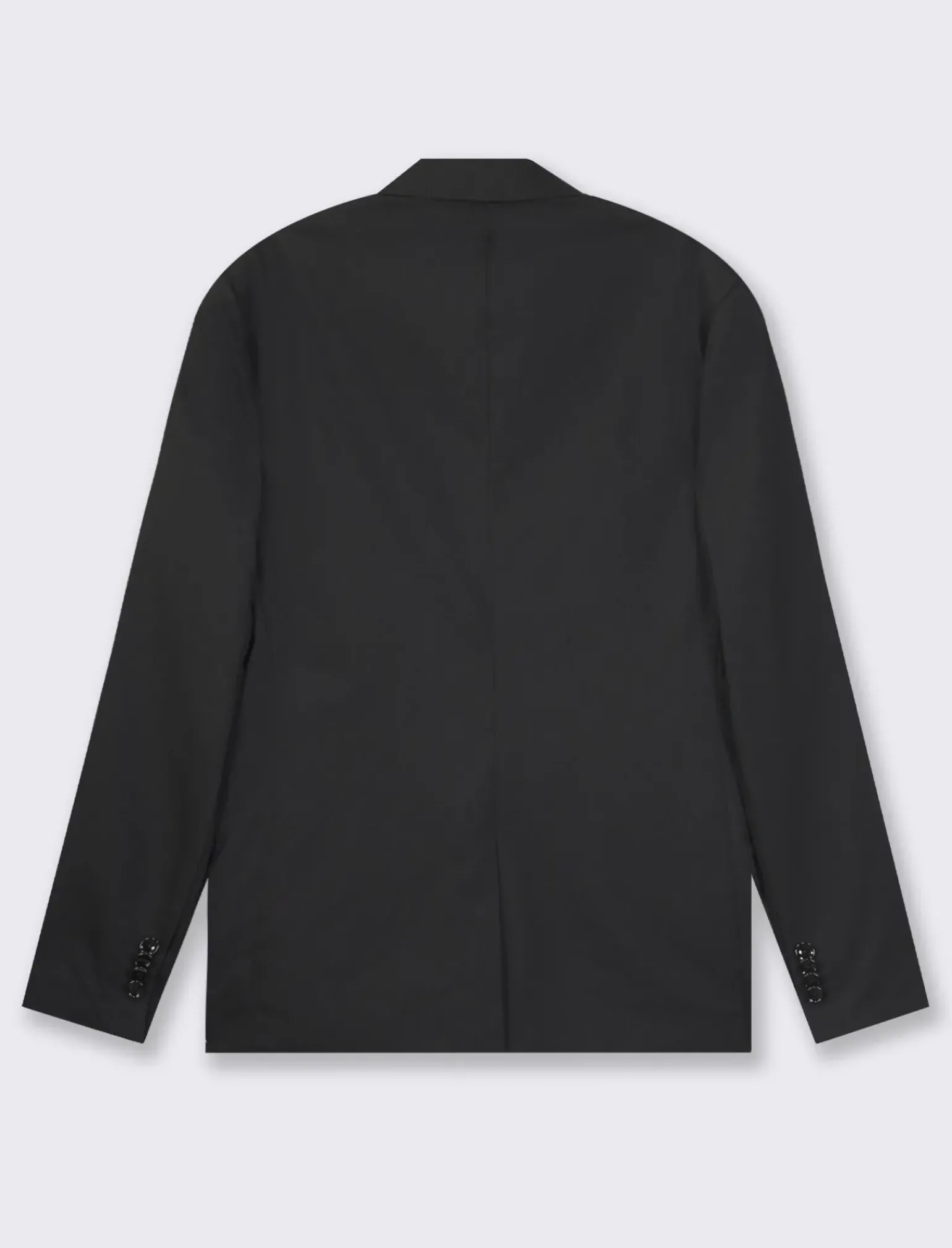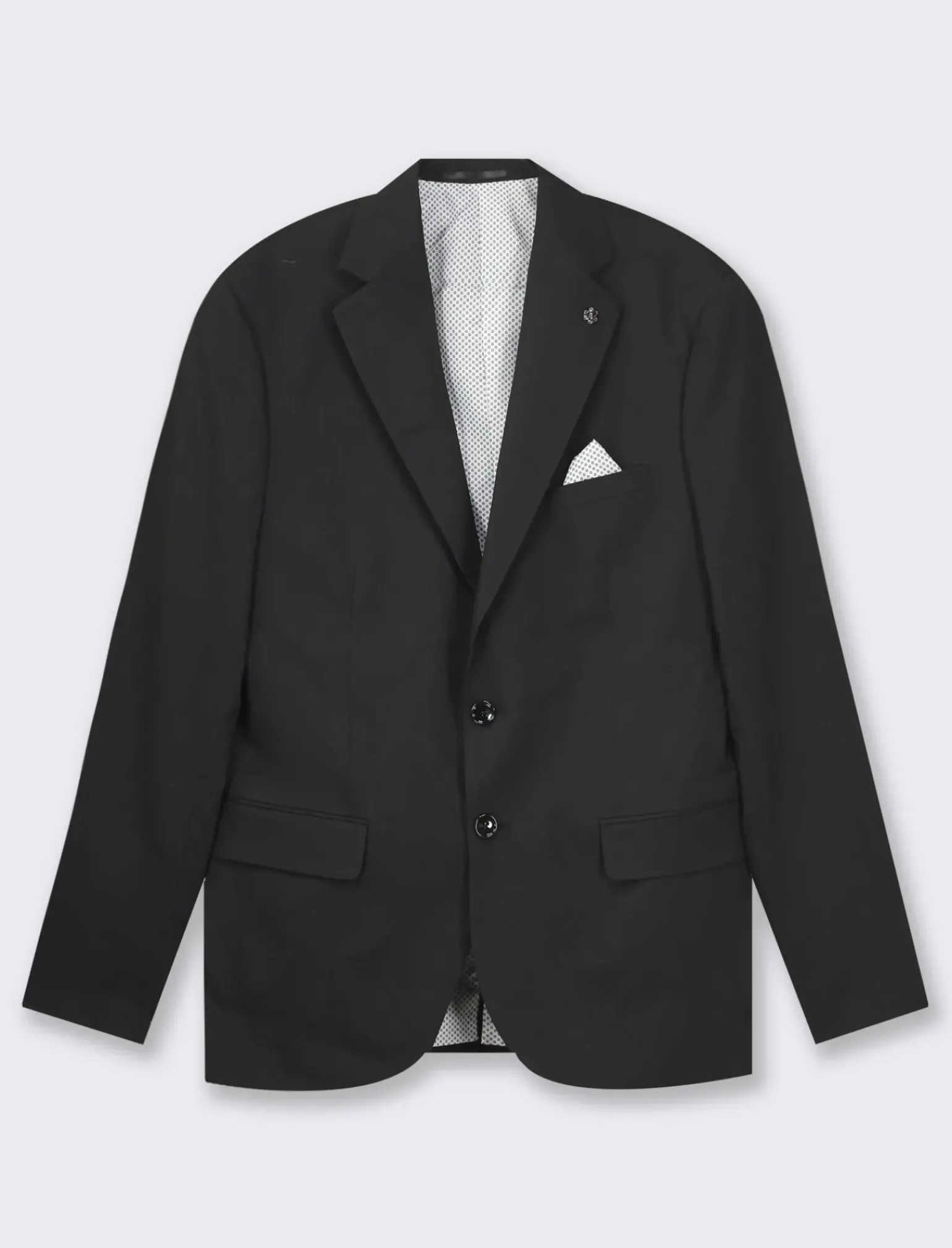 Blazer da completo formal fit per un look elegante e raffinato. Realizzato con colletto a revers classici e maniche lunghe con dettaglio di bottoni sul polsino. La tasca a filetto completa di pochette a contrasto sul petto aggiunge un tocco di classe. Le tasche con patta sui fianchi offrono praticità e stile. Il prodotto è di colore Nero