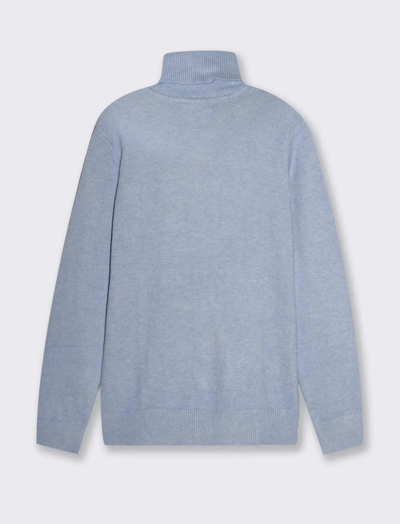 Maglia collo alto in filato premium, realizzata con una lavorazione rasata che offre una vestibilità regular fit. Questo capo è caratterizzato da una costina al collo, ai polsi e al fondo, che ne esalta il design elegante e moderno. Perfetta per le giornate più fresche, si adatta facilmente a vari stili, dal casual all’ufficio. La sua morbidezza e il comfort la rendono un elemento versatile da avere nel guardaroba maschile. Il prodotto è di colore Celeste
