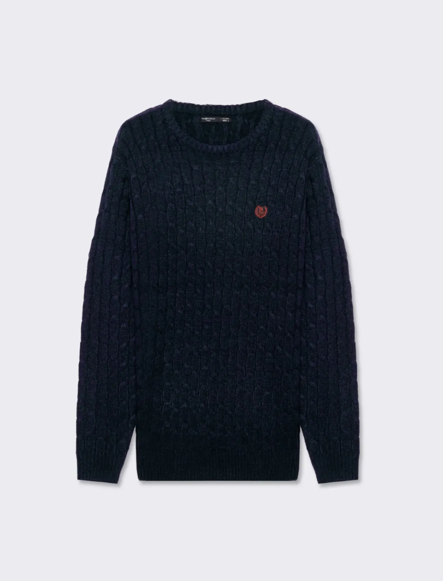 Uomo Piazza Italia Maglieria<Maglia girocollo lavorazione a trecce con ricamo sul petto, regular fit –