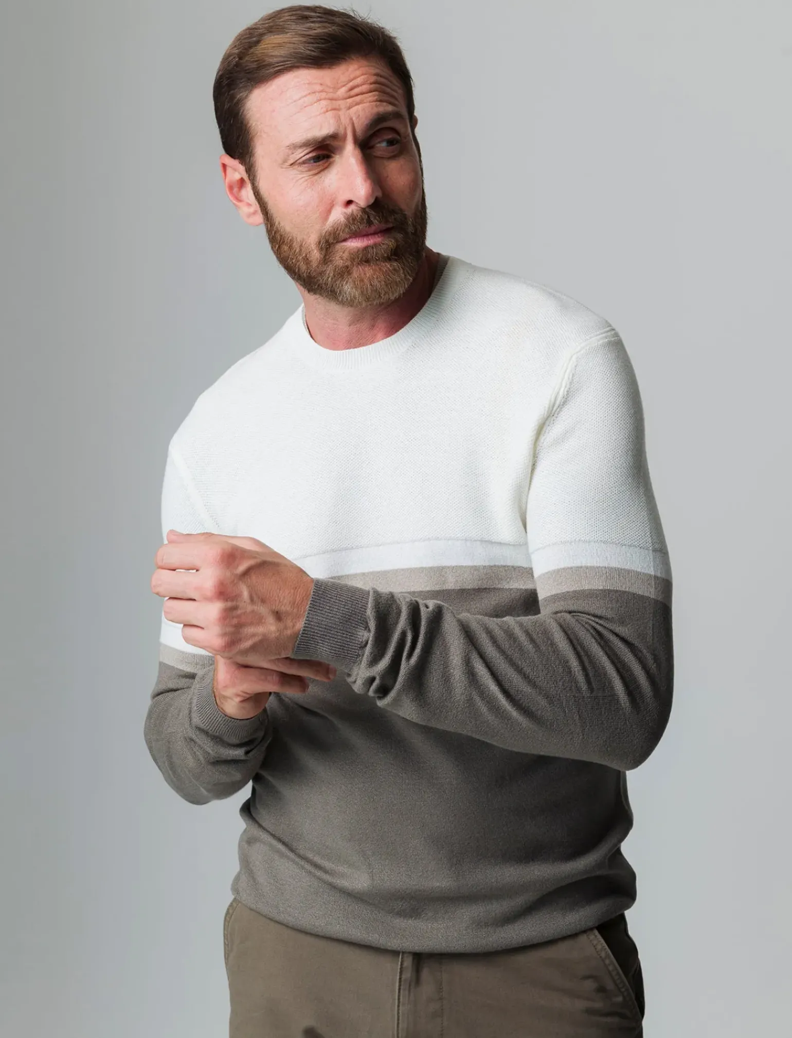 Uomo Piazza Italia Maglieria<Maglia girocollo lavorazione jacquard fantasia a fasce, regular fit – fango