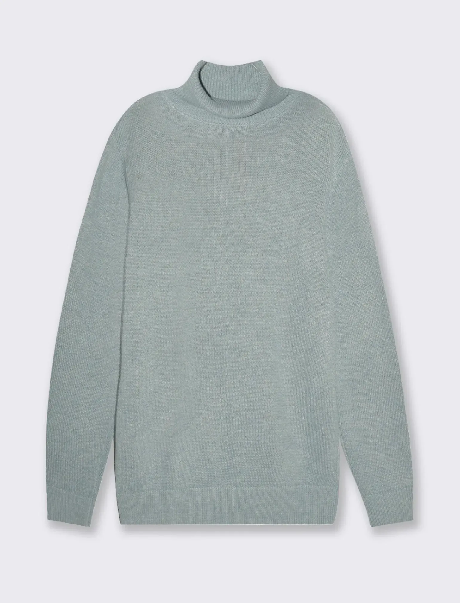 Maglia dolcevita in filato effetto lana, pensata per l’uomo moderno che cerca comfort e stile. Il design regular fit si adatta perfettamente al corpo, offrendo una vestibilità comoda senza rinunciare all’eleganza. La costina al collo, ai polsi e al fondo aggiunge un tocco di raffinatezza, rendendo questo capo versatile per ogni occasione. Ideale per essere indossata sotto un blazer o da sola per un look casual-chic, è un must-have nel guardaroba maschile. Il prodotto è di colore Verde chiaro melange