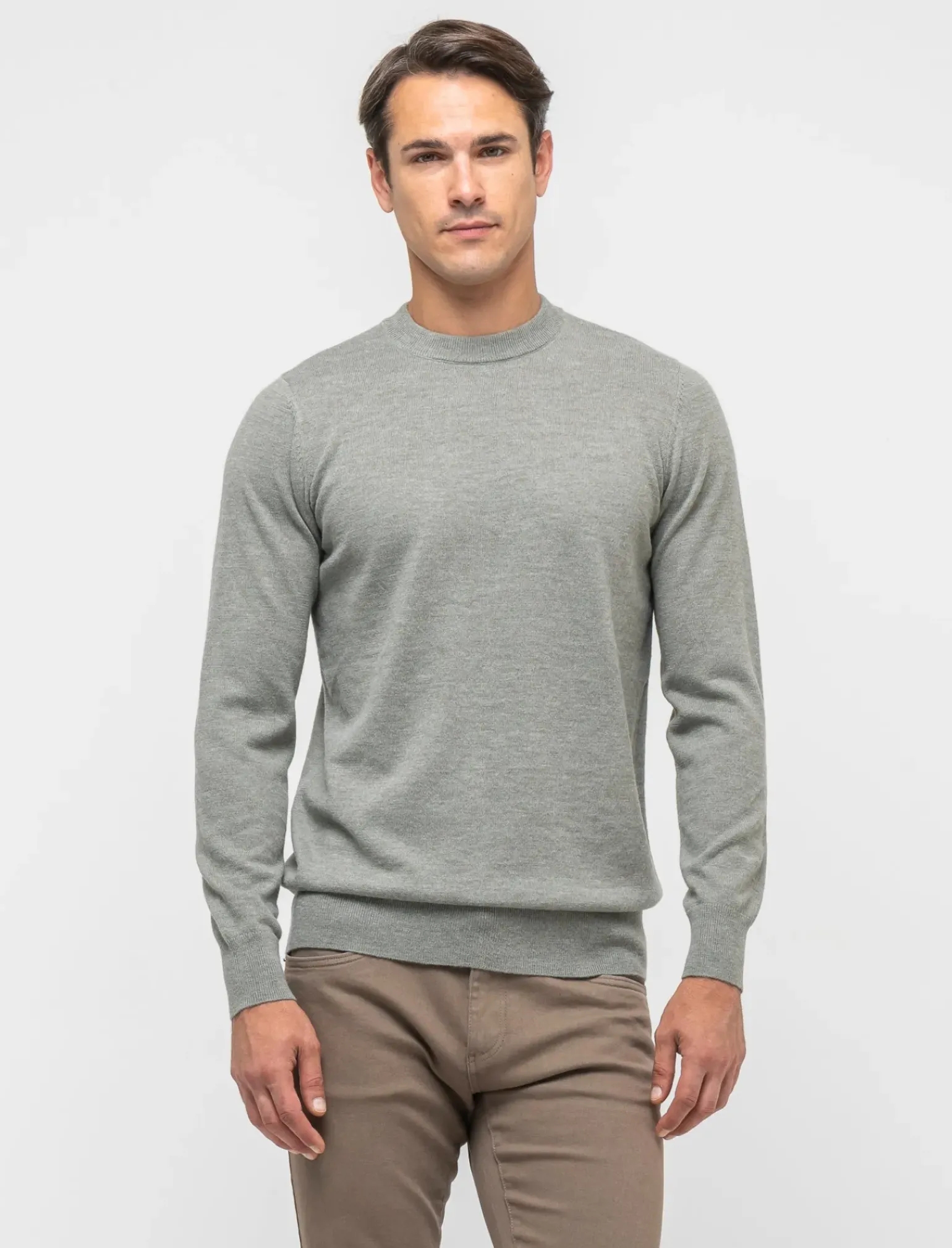 Uomo Piazza Italia Maglieria<Maglia regular fit girocollo in filato premium effetto lana – salvia