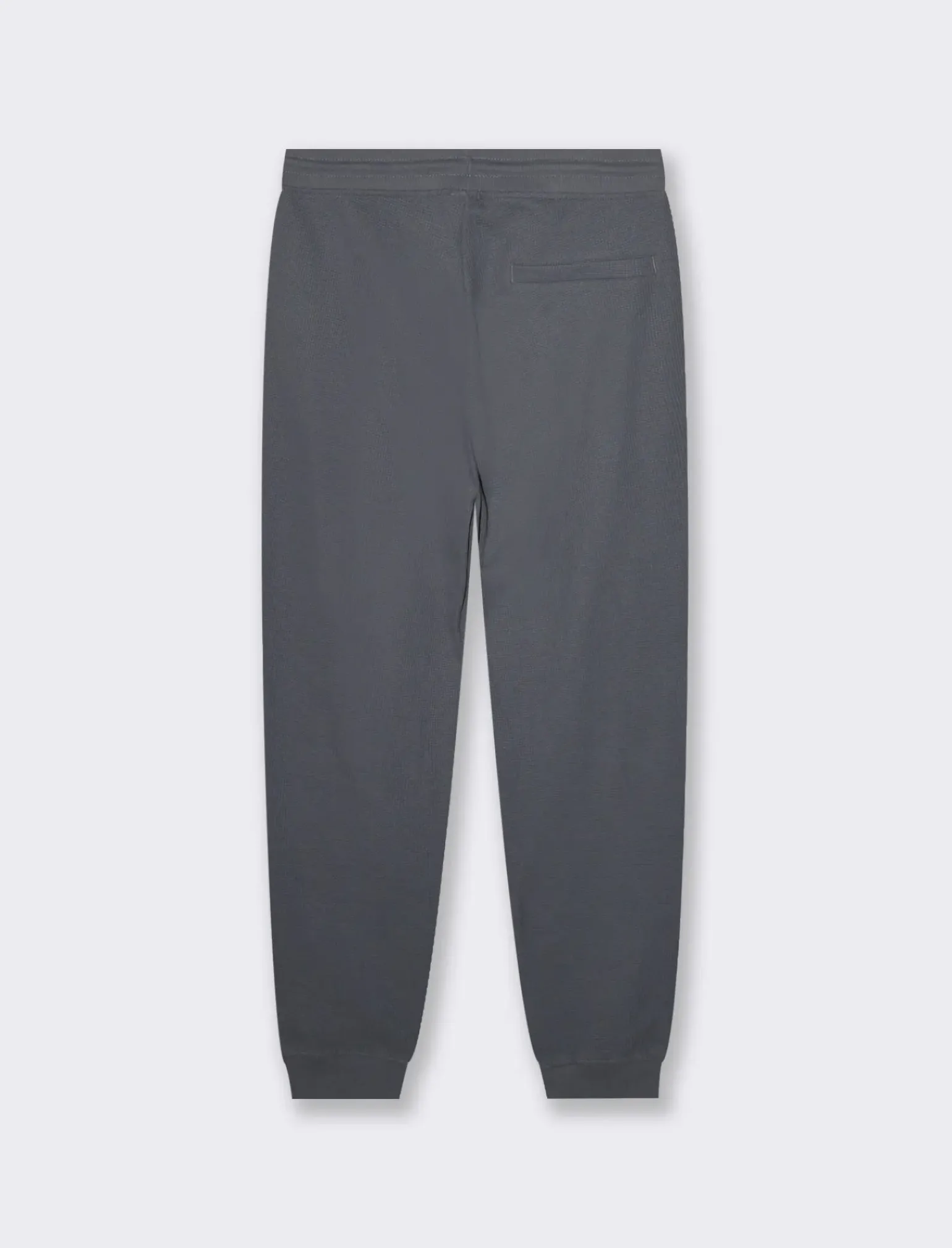 Pantaloni jogger basic in tessuto waffle sono comodi e alla moda, perfetti per un look casual e sportivo. Con vita elasticizzata regolabile e tasche pratiche, sono ideali per un uomo dinamico e alla ricerca di comfort senza rinunciare allo stile. Il dettaglio di tasca a filetto posteriore e la finitura a coste ai polsini aggiungono un tocco di originalità a questo capo versatile e trendy. Il prodotto è di colore Avion