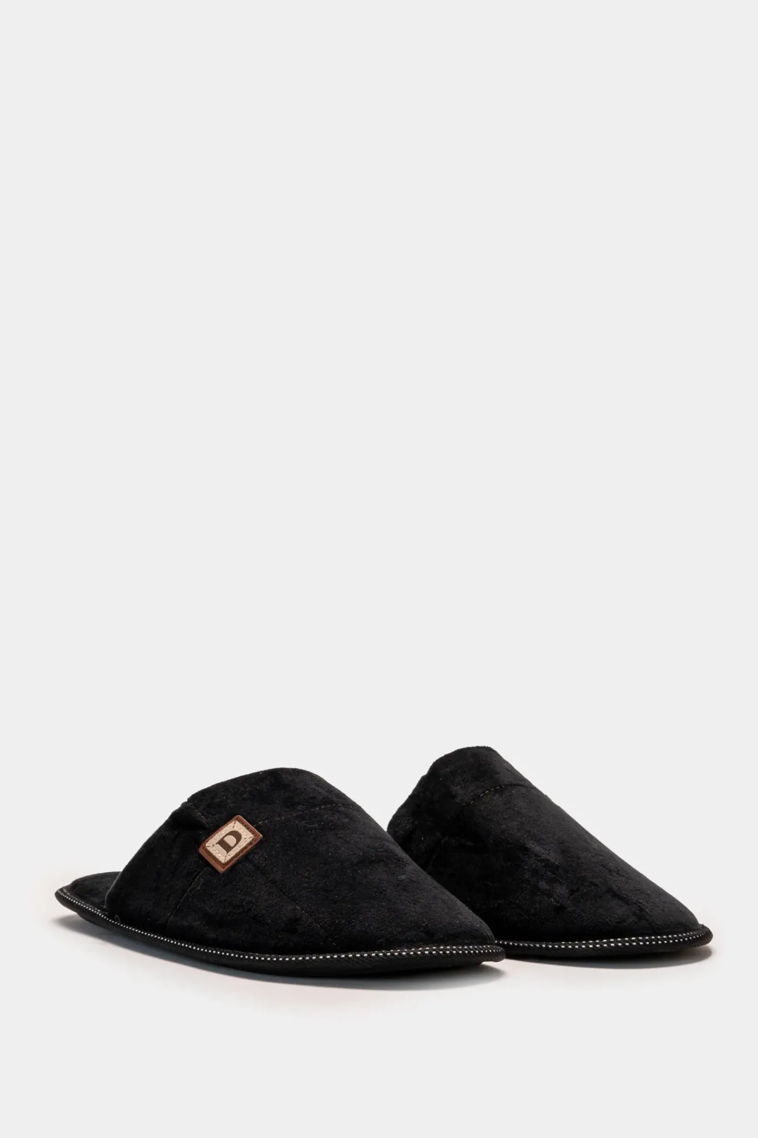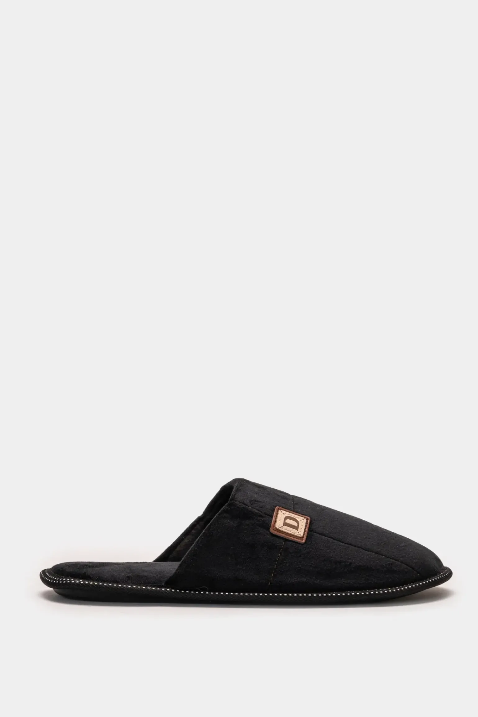 Pantofola effetto velluto da uomo, realizzata in morbido tessuto che regala una sensazione di comfort e stile. Disponibile in due eleganti varianti colore, si adatta perfettamente a diverse occasioni, dal relax domestico a momenti più informali. Il design ricercato e la texture vellutata conferiscono un tocco di classe, rendendole un accessorio ideale per chi cerca un equilibrio tra comfort e moda. Il prodotto è di colore Nero