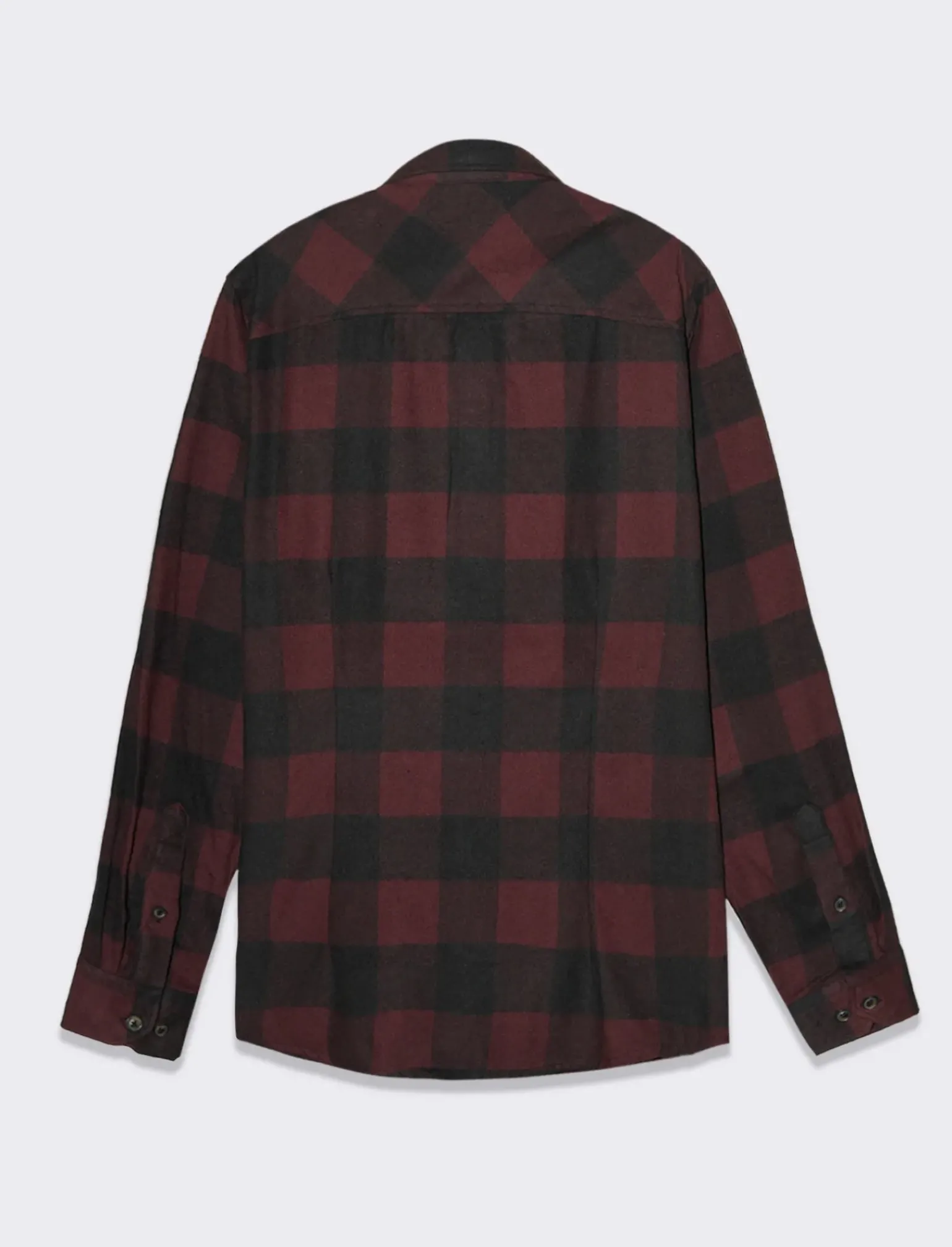 Camicia a quadri in flanella, perfetta per un look casual e confortevole. Realizzata in morbido tessuto misto cotone, presenta un collo alla moda e maniche lunghe con bottoni ai polsini. La chiusura frontale a vista aggiunge un tocco di stile. Ideale per un uomo che ama vestire con classe e comodità. Il prodotto è di colore Bordeaux