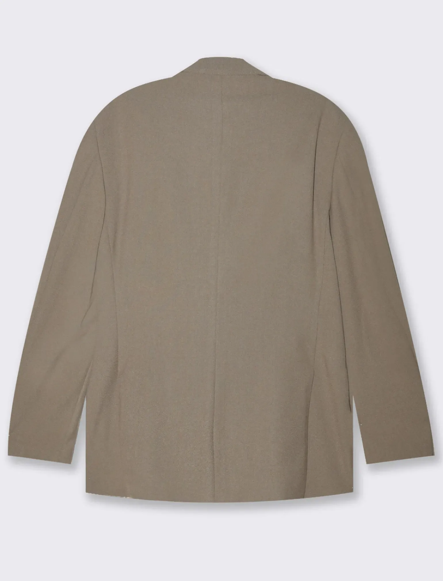 Blazer doppio petto in tessuto strutturato, caratterizzato da un elegante formal fit che si adatta perfettamente alla silhouette maschile. Il rever classico conferisce un tocco di raffinatezza, mentre le maniche lunghe, arricchite da un dettaglio di bottoni sui polsini, aggiungono un elemento distintivo. Le pratiche tasche a filetto sui fianchi e la tasca interna offrono funzionalità senza compromettere lo stile, rendendolo ideale per occasioni formali. Il prodotto è di colore Grigio tortora