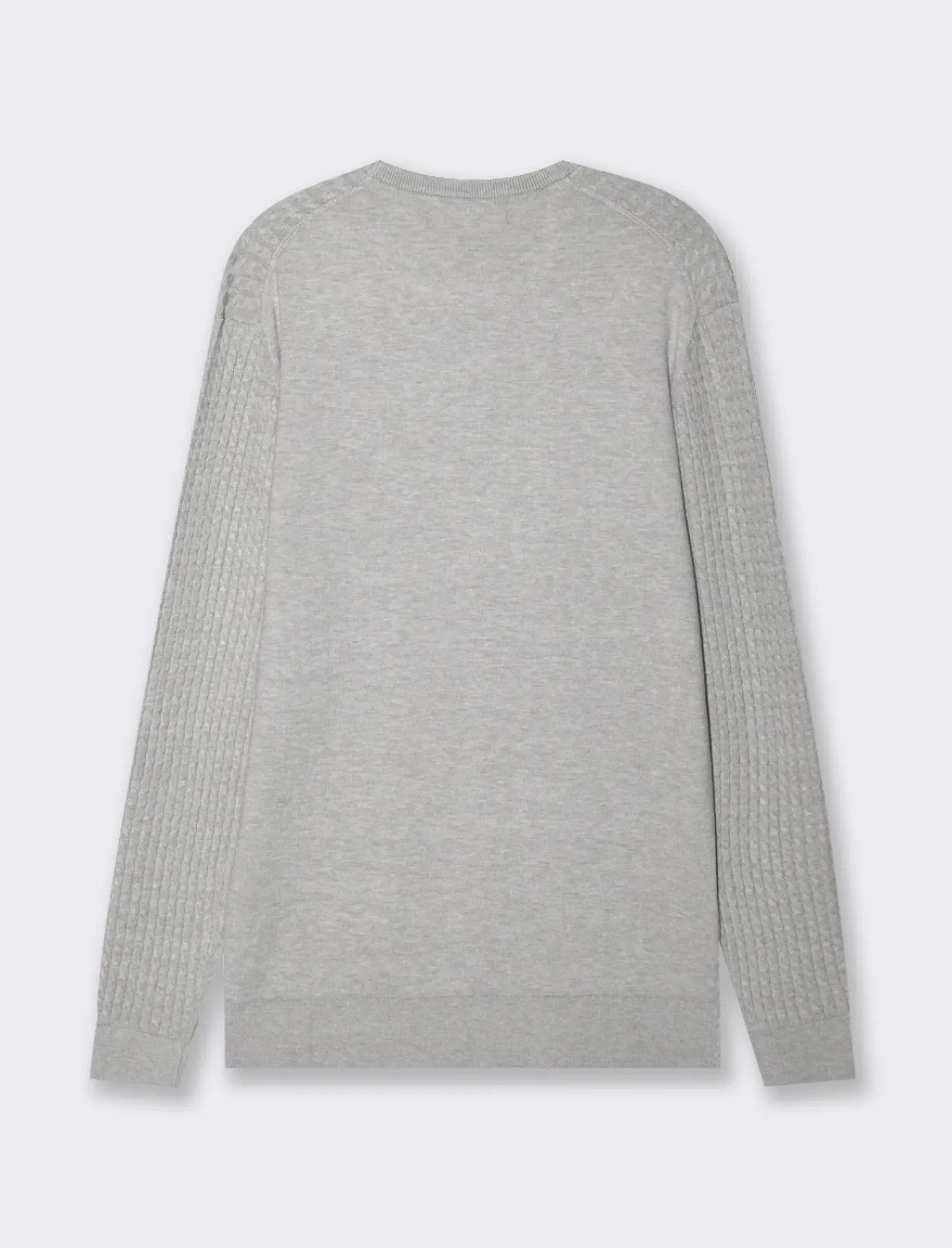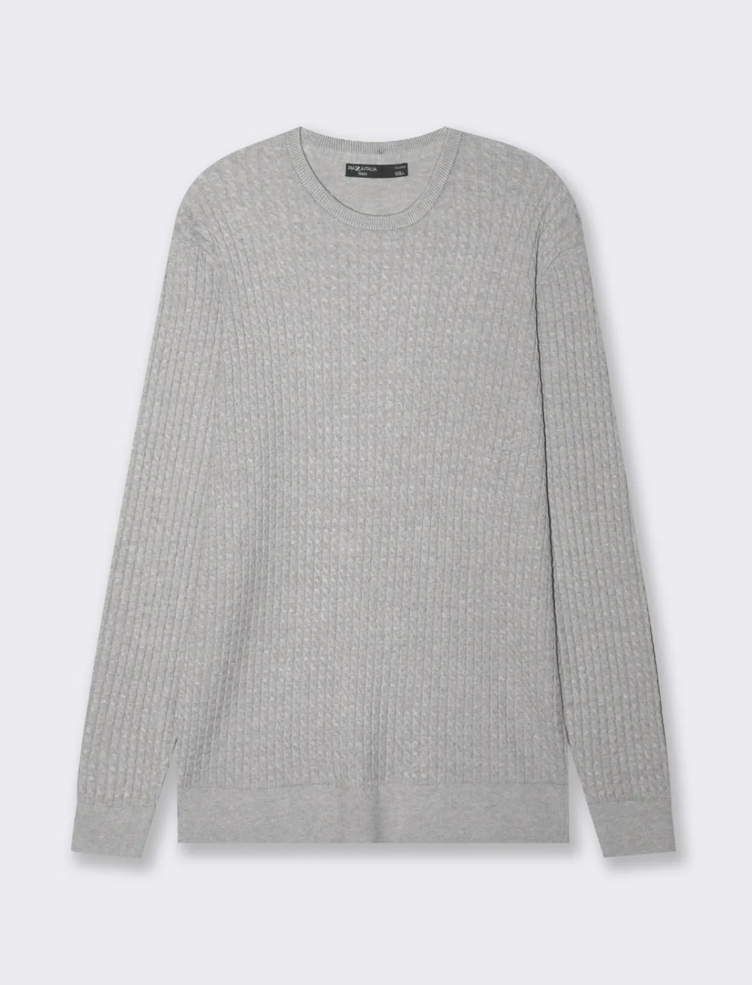 Maglia girocollo a treccine, un capo versatile e dal design elegante, realizzata con una raffinata lavorazione jacquard. La vestibilità regular fit garantisce comfort e libertà di movimento, rendendola ideale per ogni occasione. La costina al collo, ai polsi e al fondo aggiunge un tocco di stile, mentre le treccine conferiscono un effetto visivo unico. Perfetta da indossare sia in contesti casual che più formali. Il prodotto è di colore Grigio mel.