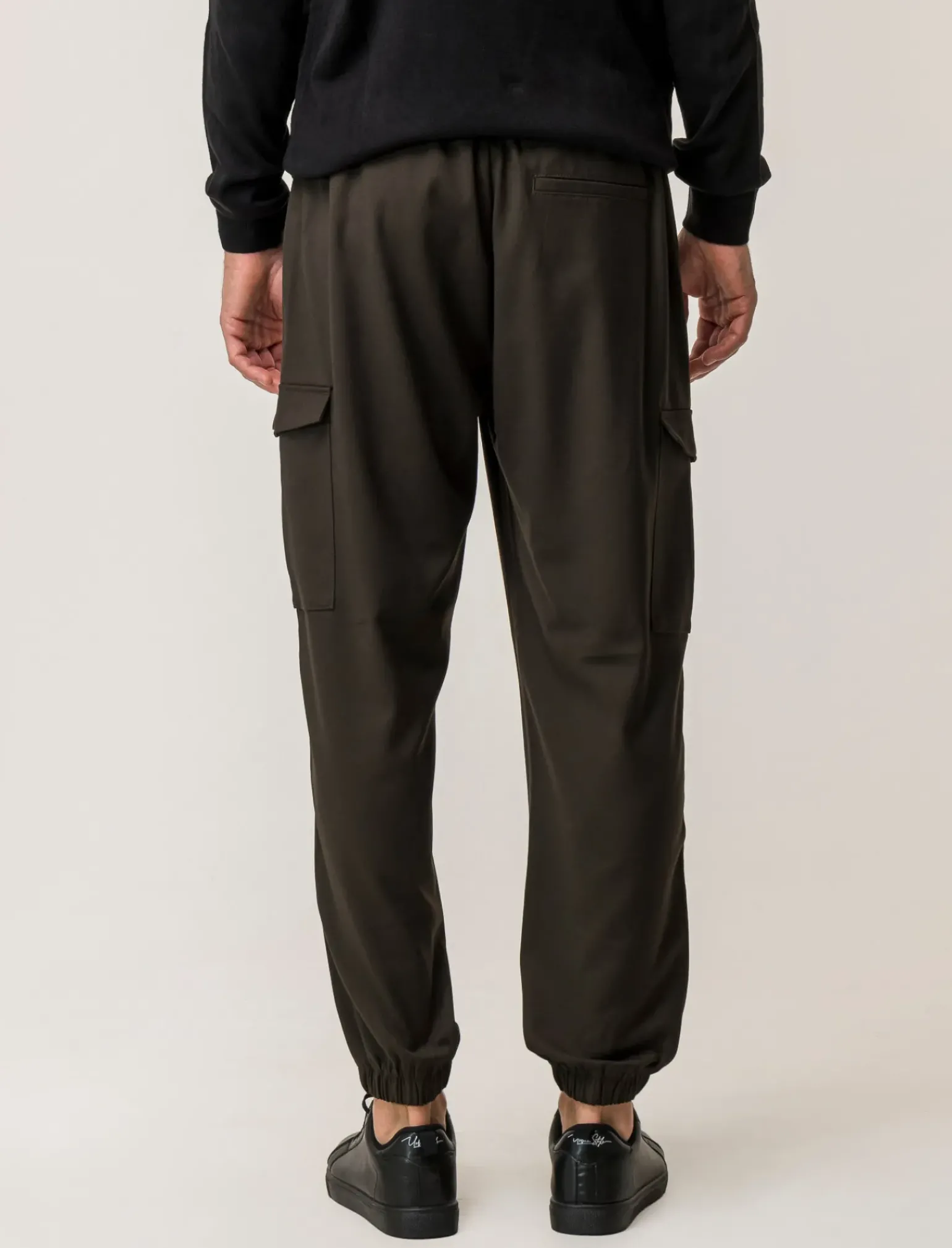 Pantaloni cargo con vita semi elasticizzata, comodi e pratici per ogni occasione. Con pinces sul davanti e tasche laterali con patta, offrono un look casual ma curato. Il dettaglio della ditasca a filetto posteriore aggiunge un tocco di originalità. L’orlo elasticizzato assicura una vestibilità perfetta, mentre la chiusura con bottone completa il design di questi versatili pantaloni chino. Il prodotto è di colore Verde kaki