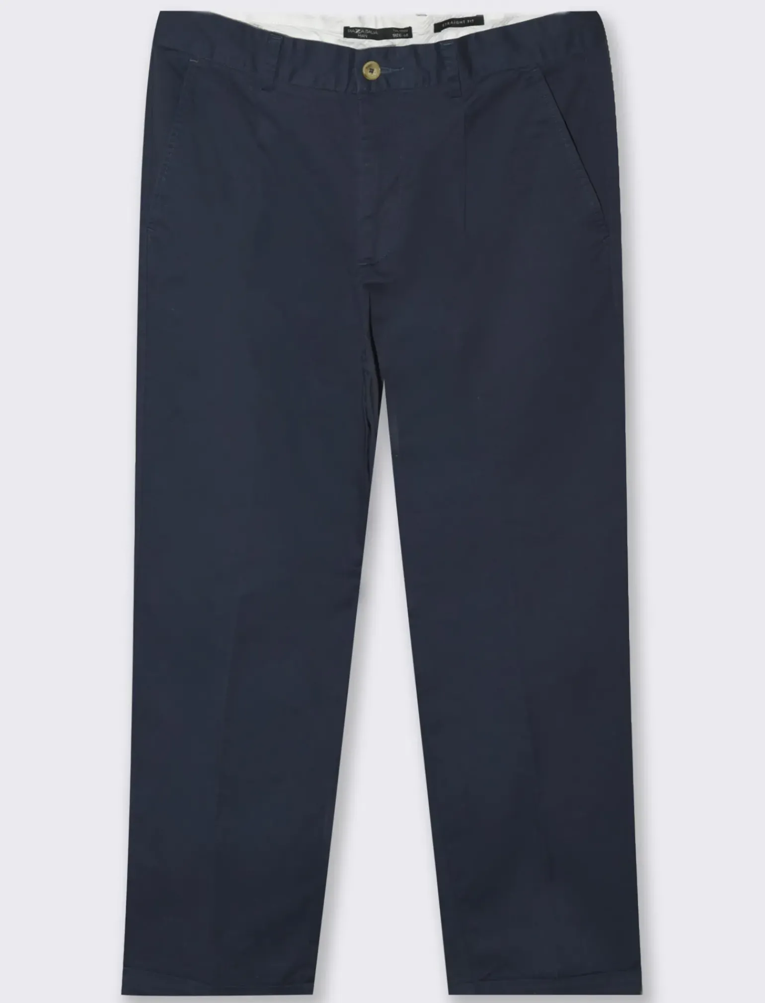 Pantaloni chino straight fit comodi e versatili, i pantaloni Chino straight fit sono realizzati in tessuto twill di cotone elasticizzato. Con tasche anteriori e dettaglio di tasche a filetto posteriori, presentano anche pinces sul davanti e chiusura con cerniera e bottone. Ideali per un look casual ma curato, perfetti per ogni occasione. Il prodotto è di colore Blu
