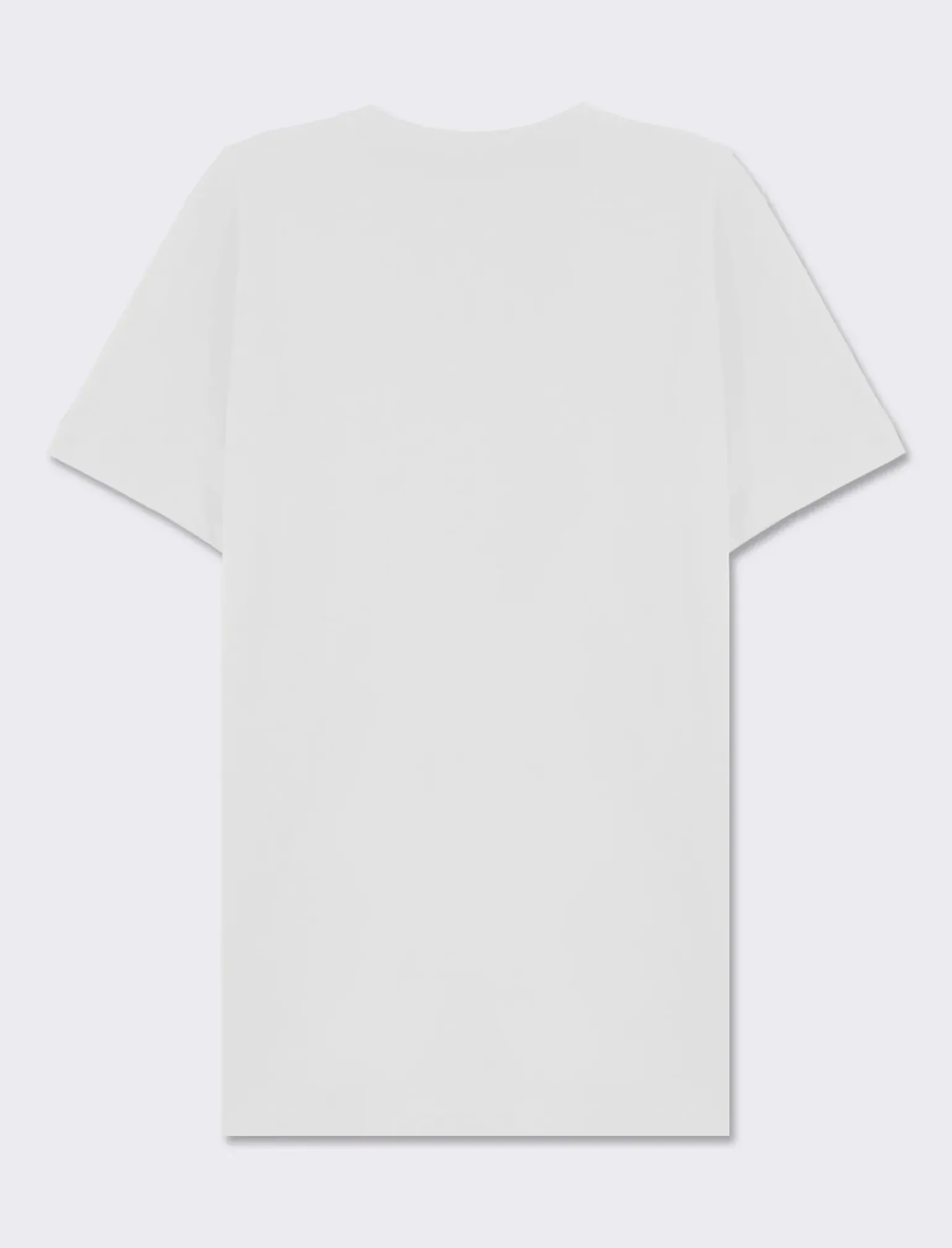 T-shirt girocollo in morbido jersey di cotone, perfetta per un look casual e trendy. Le maniche corte e il taglio regularfit assicurano comfort e libertà di movimento. La stampa a contrasto sul davanti, con effetto crack e ispirazione college, aggiunge un tocco di originalità al tuo outfit. Il prodotto è di colore Bianco