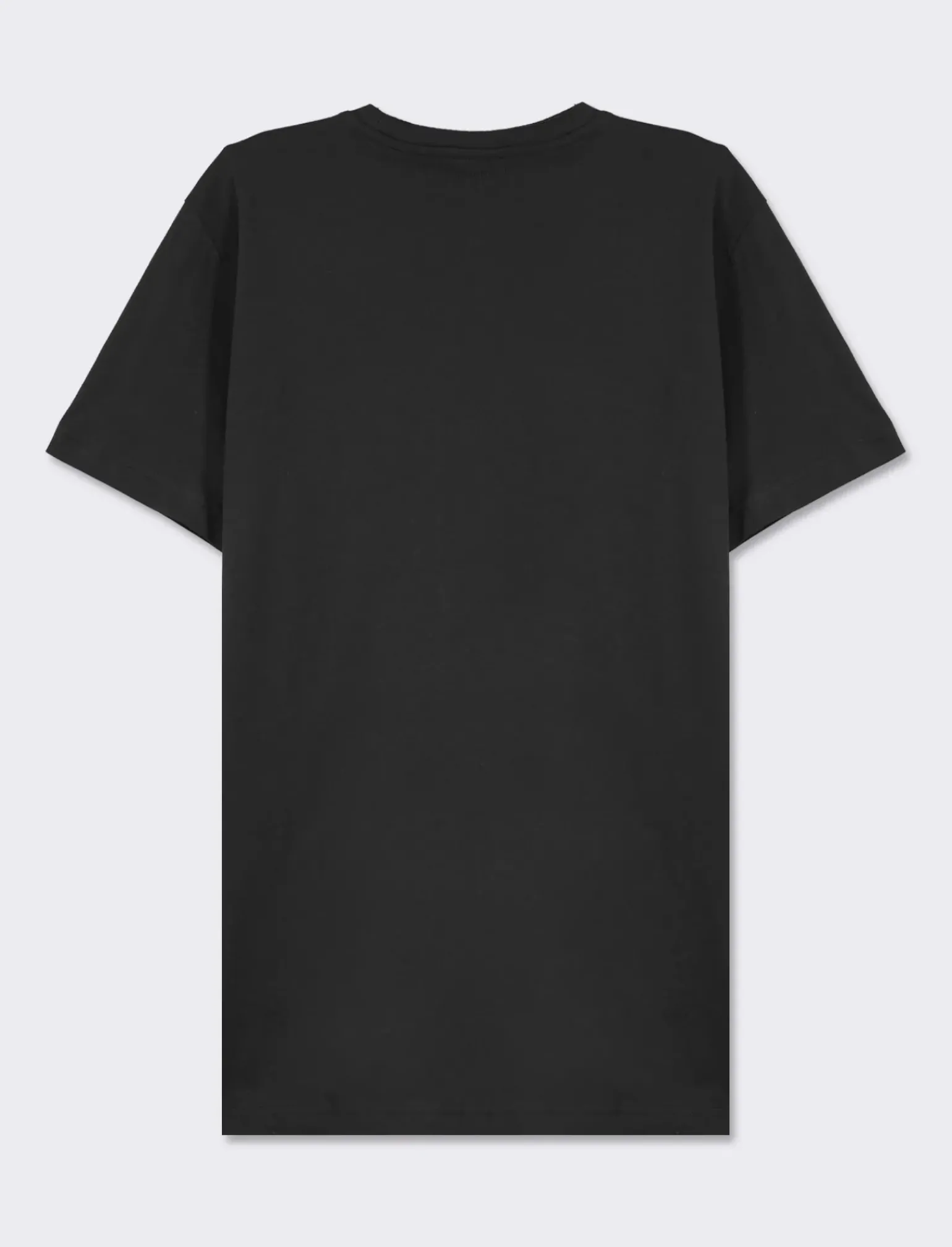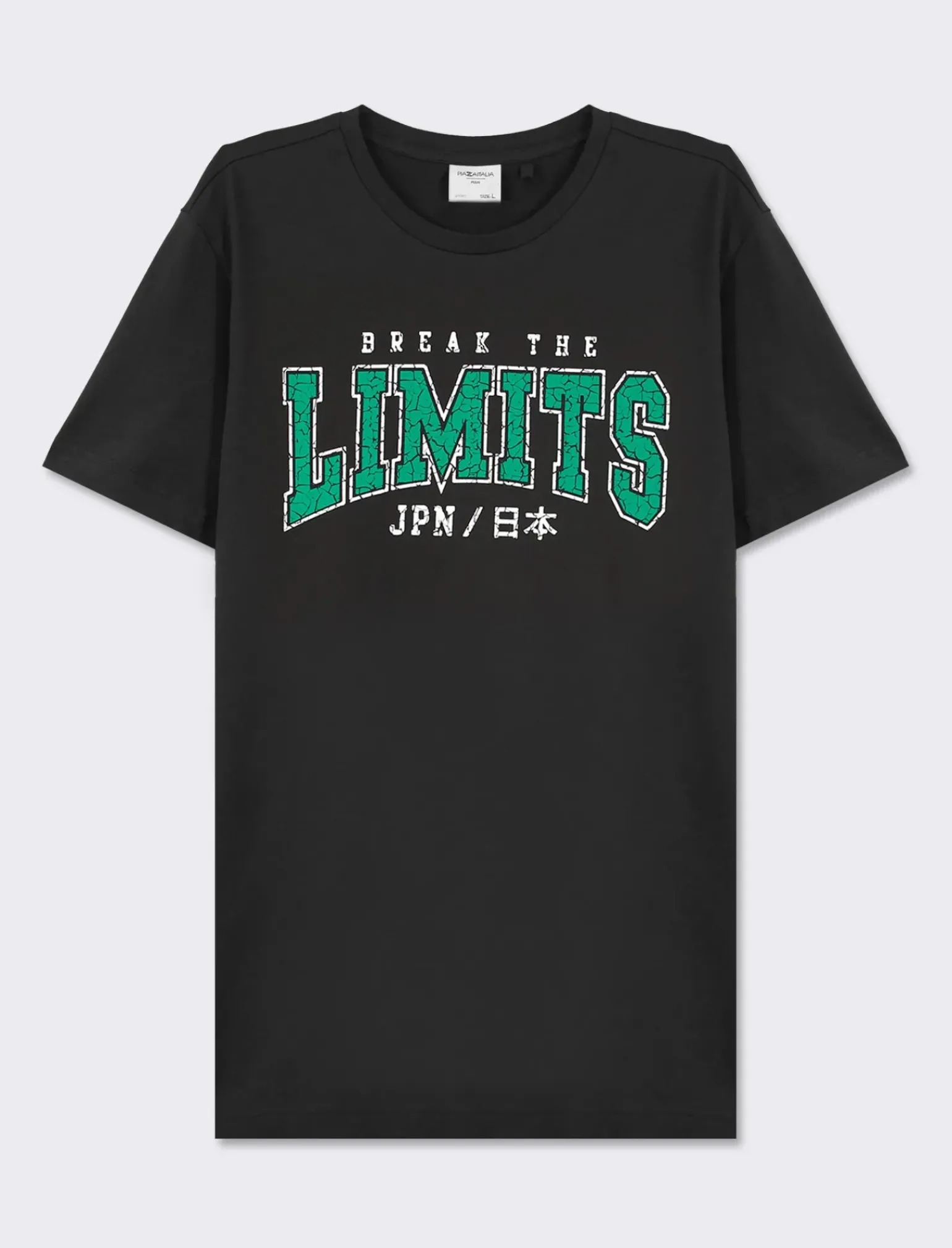 T-shirt girocollo in morbido jersey di cotone, perfetta per un look casual e trendy. Le maniche corte e il taglio regularfit assicurano comfort e libertà di movimento. La stampa a contrasto sul davanti, con effetto crack e ispirazione college, aggiunge un tocco di originalità al tuo outfit. Il prodotto è di colore Nero
