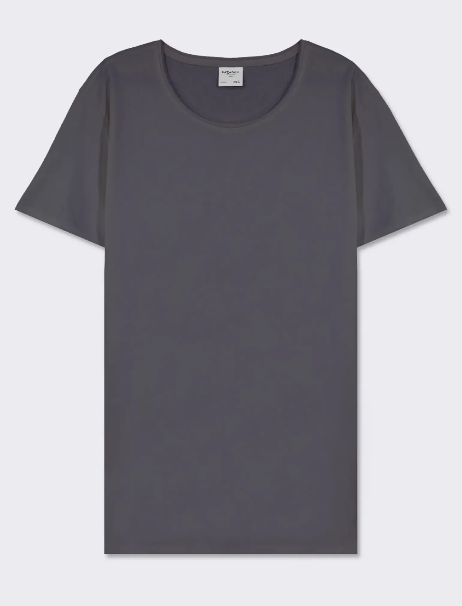 T-shirt girocollo in jersey di puro cotone, perfetta per un look casual e confortevole. Il taglio vivo degli orli conferisce un tocco di modernità e originalità. Ideale per un uomo che ama vestire con stile e praticità. Il prodotto è di colore Avion