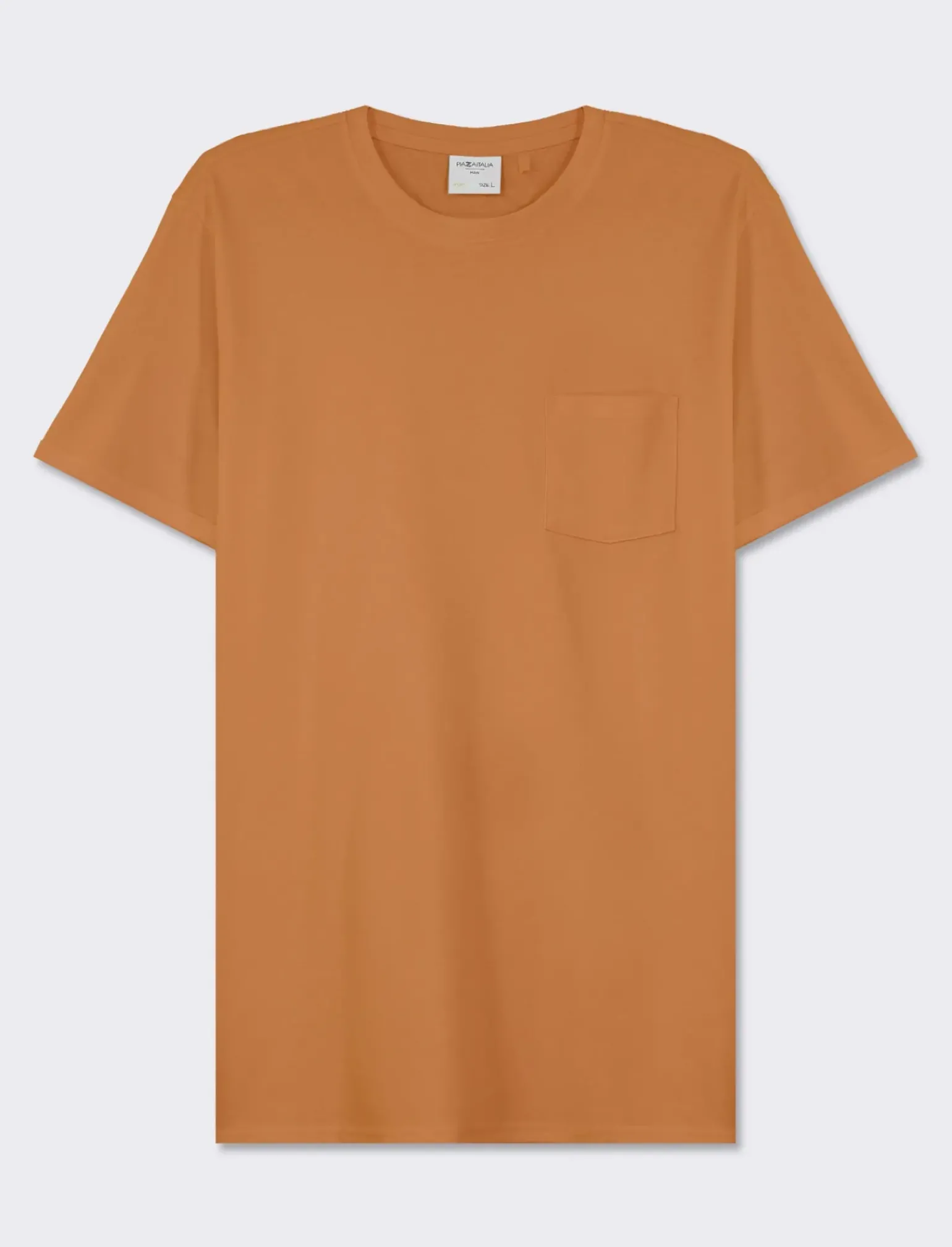 T-shirt basic con taschino, perfetta per un look casual e comodo. Realizzata in morbido jersey di cotone, questa maglietta girocollo è un capo essenziale nel guardaroba di ogni uomo. La tasca sul petto aggiunge un tocco di stile e praticità. Ideale da indossare in ogni occasione, dalla giornata in ufficio al weekend con gli amici. Il prodotto è di colore Marrone tabacco