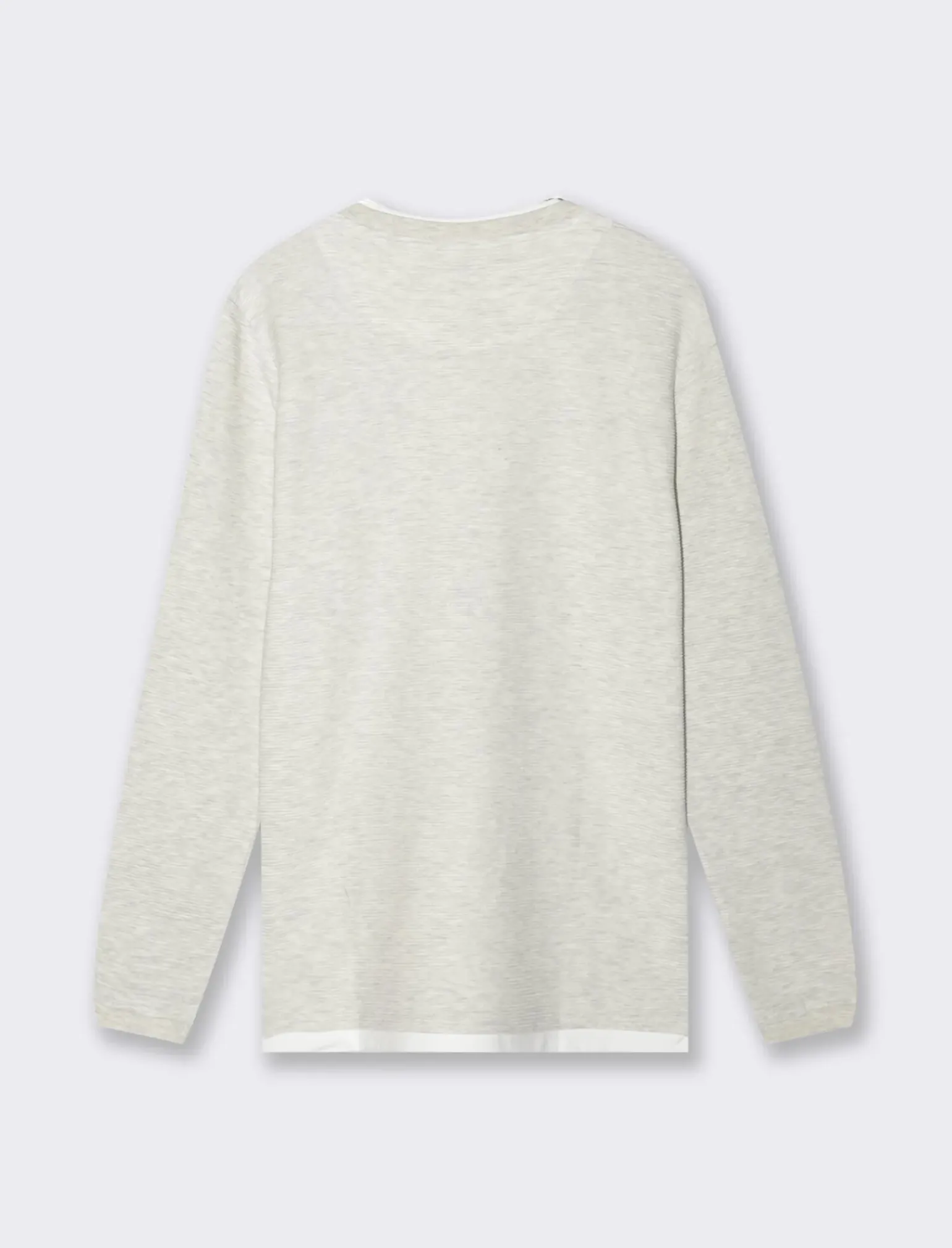 T-shirt girocollo per uomo con maniche lunghe e vestibilità regular fit. Il design a coste orizzontali conferisce un tocco di stile unico, mentre i dettagli a contrasto in jersey al collo e sul fondo aggiungono un tocco di originalità. Ideale per un look casual ma curato, perfetto per ogni occasione. Il prodotto è di colore Grigio mel.