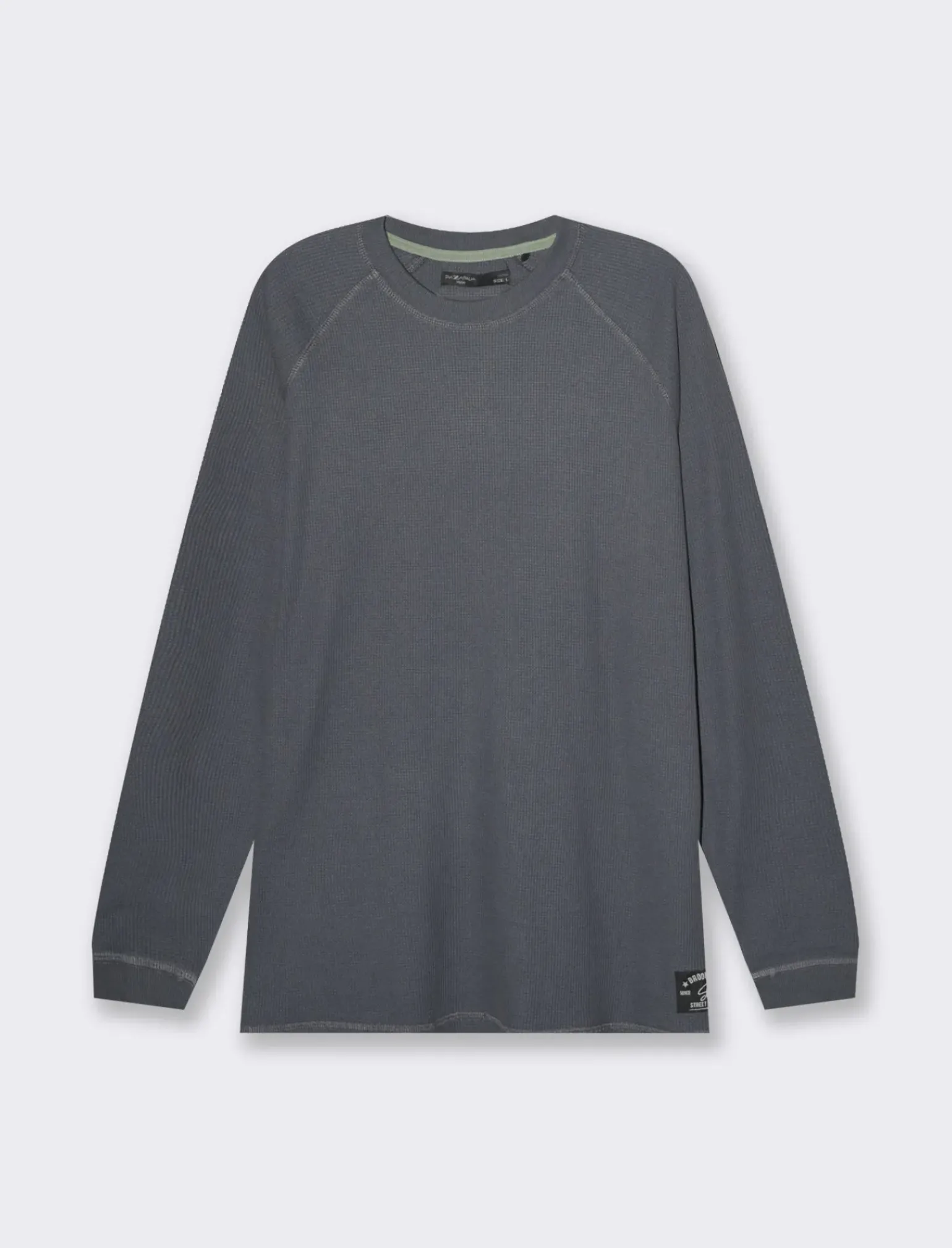 T-shirt maniche lunghe in morbido cotone con struttura a waffel, ideale per un look casual e confortevole. Il taglio regular fit assicura una vestibilità comoda e adatta a ogni occasione. Il dettaglio del badge ricamato sul fondo anteriore aggiunge un tocco di stile in più. Perfetta da indossare in ogni stagione, questa t-shirt è un must-have nel guardaroba di ogni uomo alla moda. Il prodotto è di colore Avion