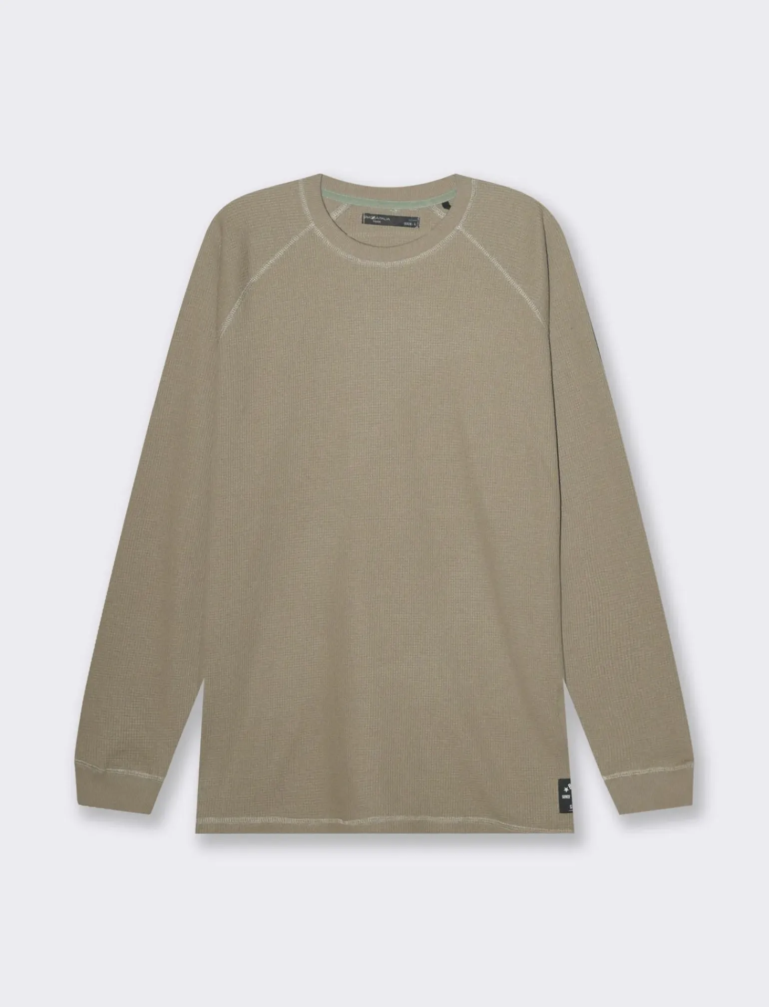 T-shirt maniche lunghe in morbido cotone con struttura a waffel, ideale per un look casual e confortevole. Il taglio regular fit assicura una vestibilità comoda e adatta a ogni occasione. Il dettaglio del badge ricamato sul fondo anteriore aggiunge un tocco di stile in più. Perfetta da indossare in ogni stagione, questa t-shirt è un must-have nel guardaroba di ogni uomo alla moda. Il prodotto è di colore Verde kaki