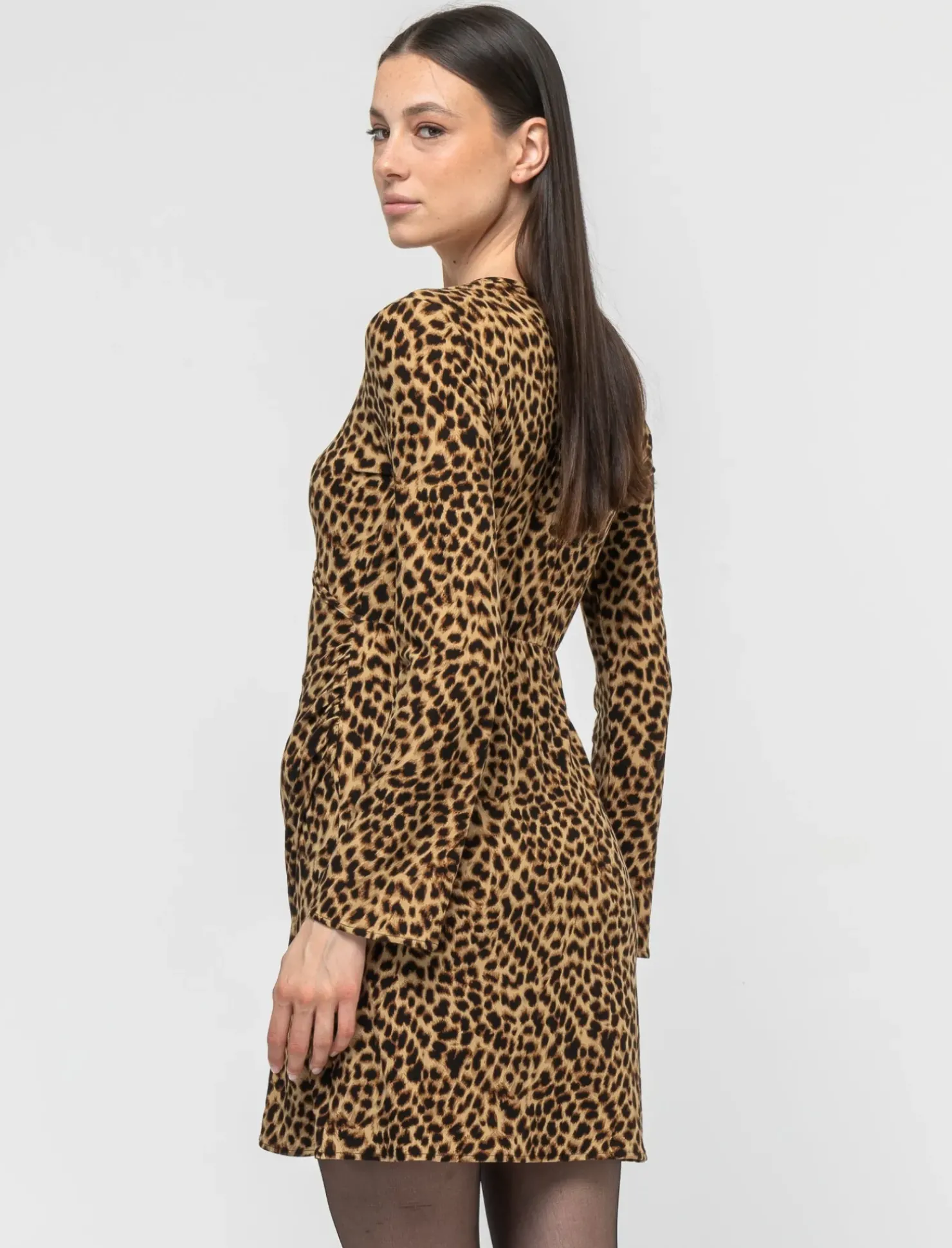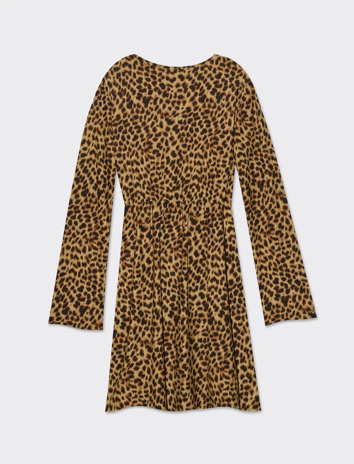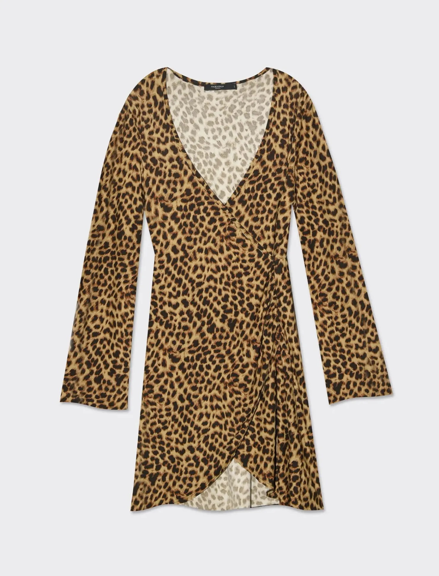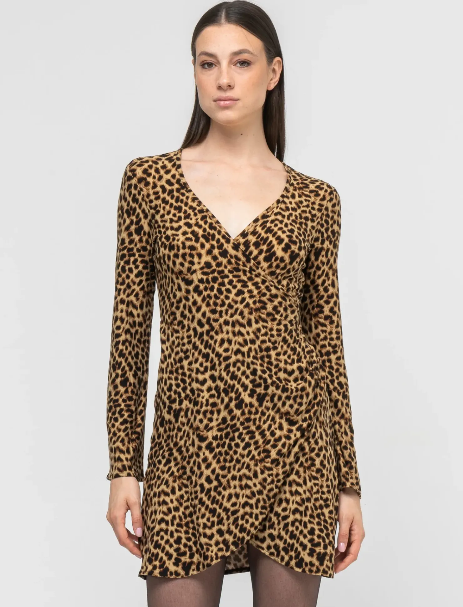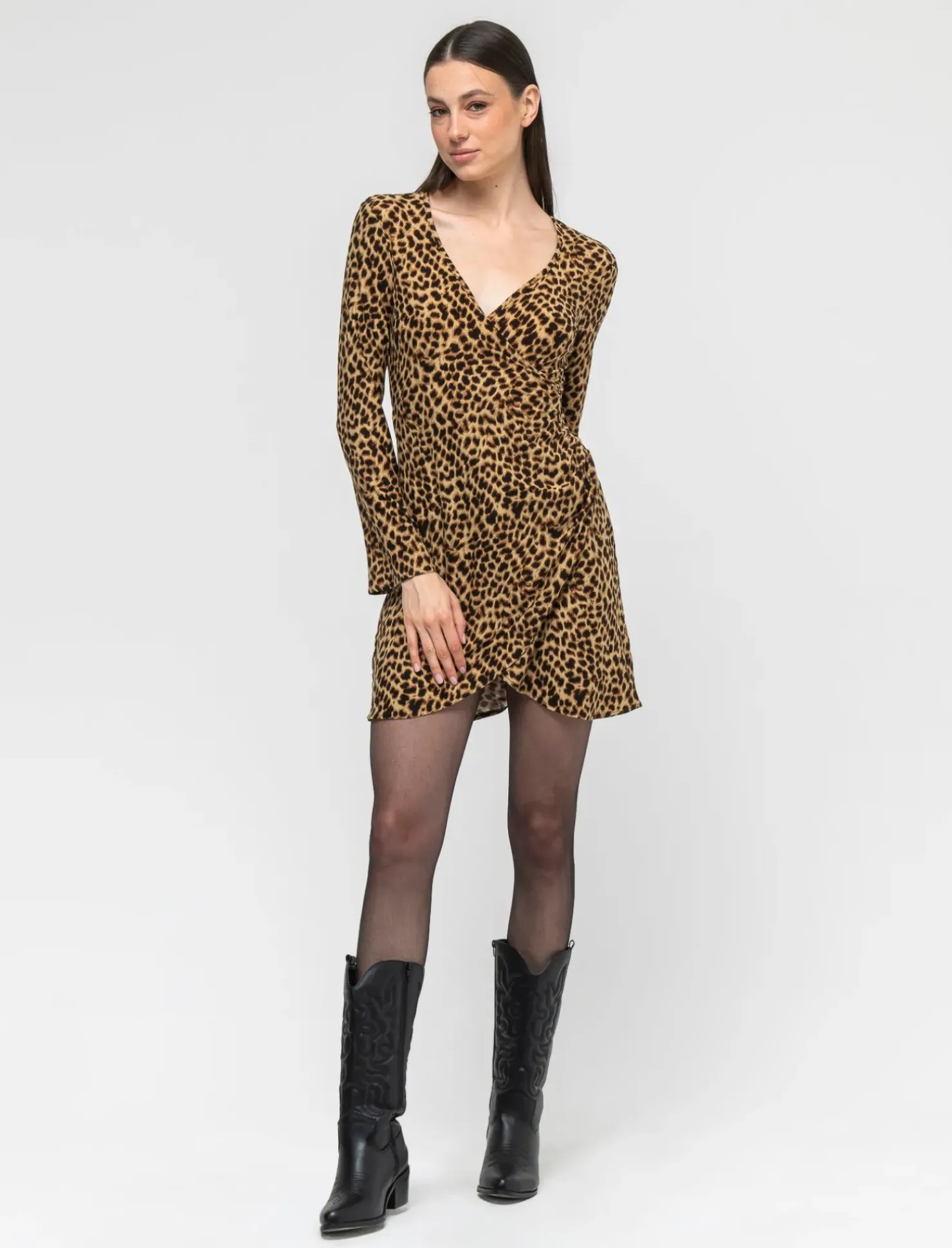 Vestito corto stampato per donna con un elegante pannello drappeggiato sul davanti e un comodo elastico sul retro. Le maniche lunghe aggiungono un tocco di classe e versatilità a questo capo, perfetto per un look casual ma sofisticato. Il prodotto è di colore var 1