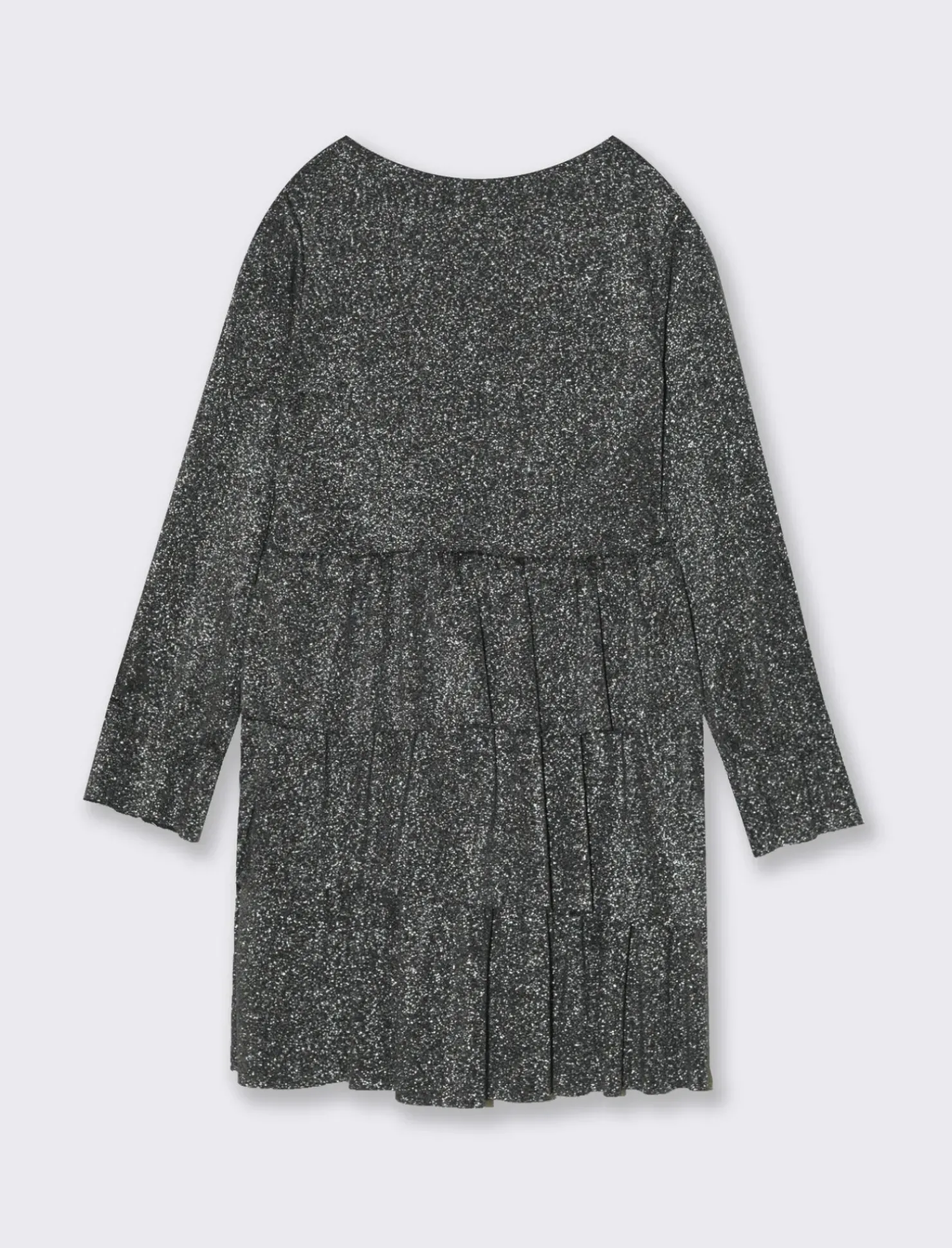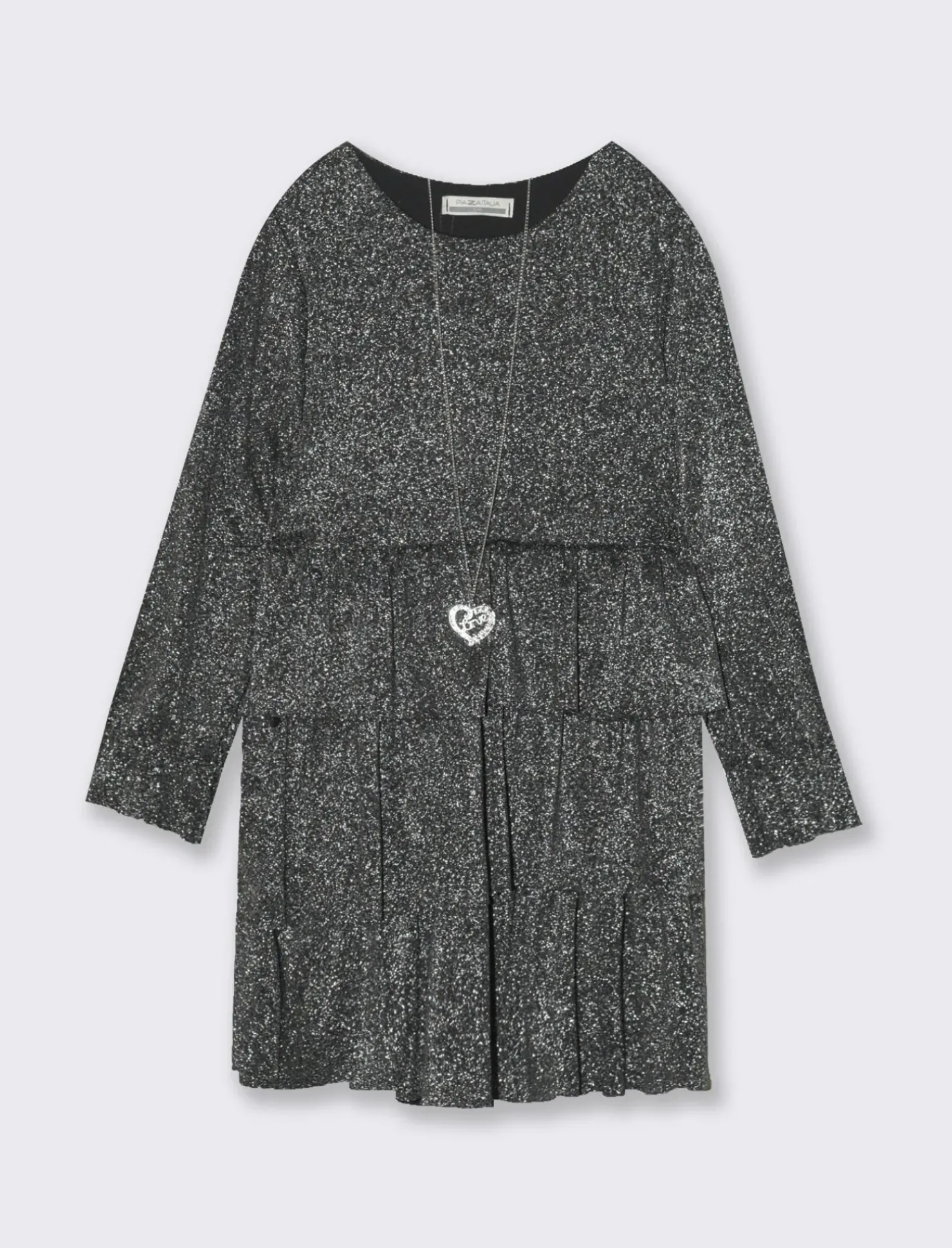 Vestito da bambina modello girocollo con balze e polsino arricciato, in morbido tessuto elastico con filo metallizzato e accessorio-collana Il prodotto è di colore Nero