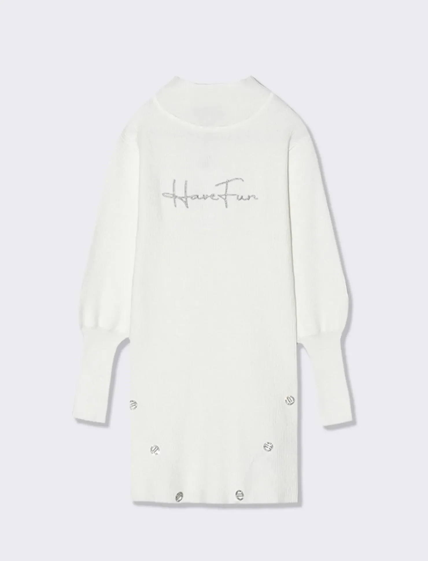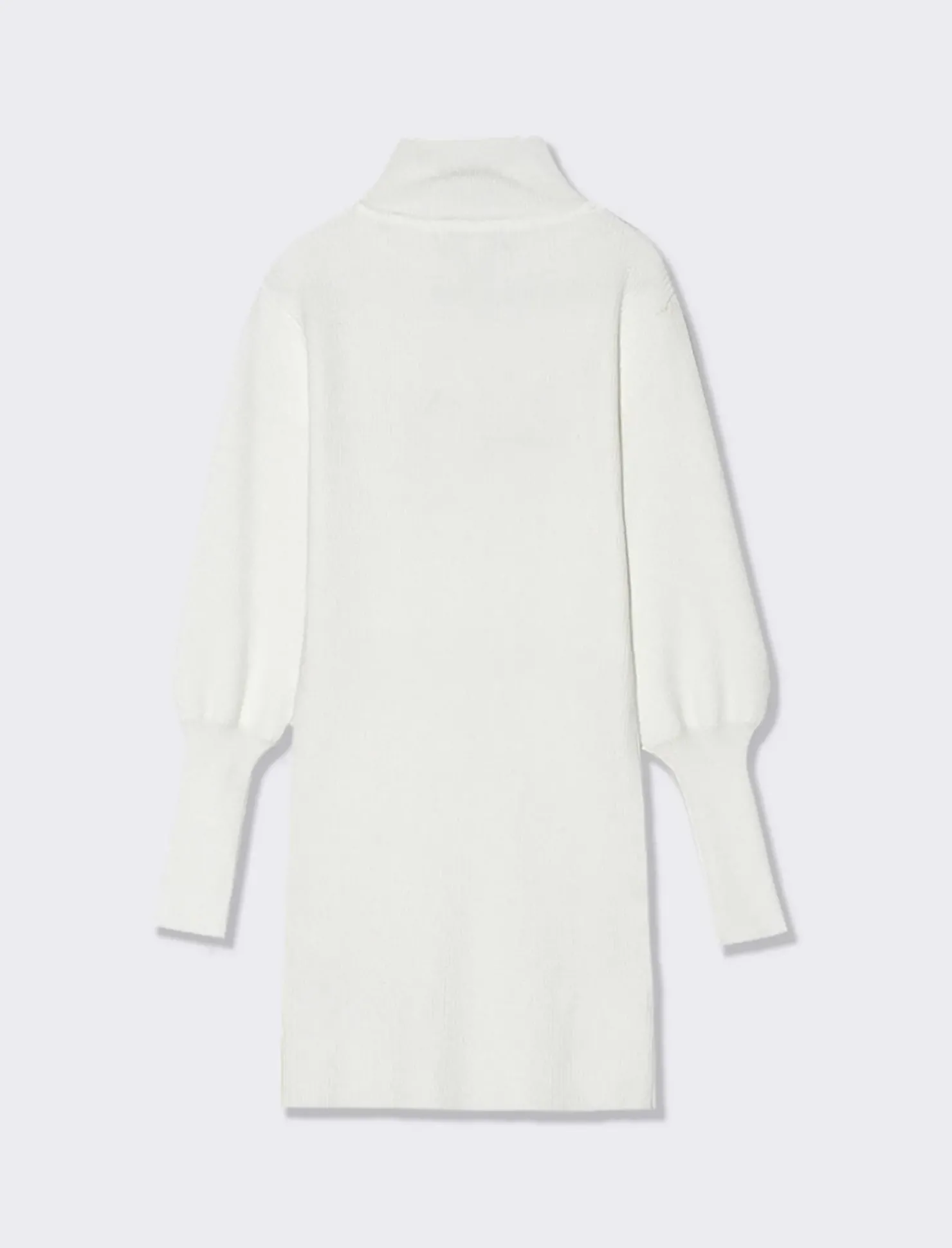 Piazza Italia Abito in maglia a coste con collo e polsini alti – sporco Bianco New