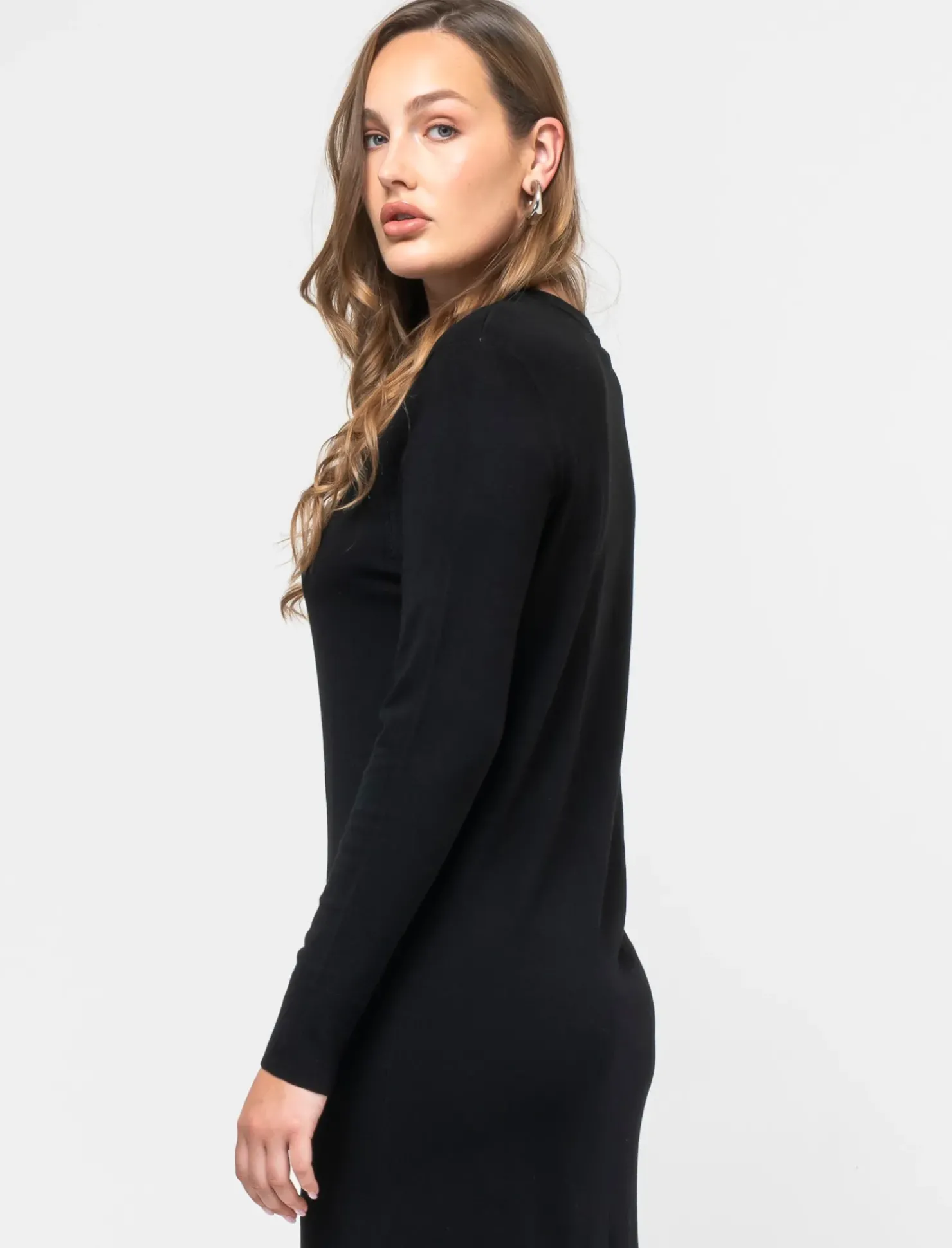 Vestito lungo in filato morbido, perfetto per un look elegante e confortevole. Disponibile in una varietà di colori per adattarsi ad ogni stile e occasione. Ideale per valorizzare la femminilità e sentirsi sempre al meglio. Un capo versatile e di tendenza, da non farsi sfuggire. Il prodotto è di colore Nero