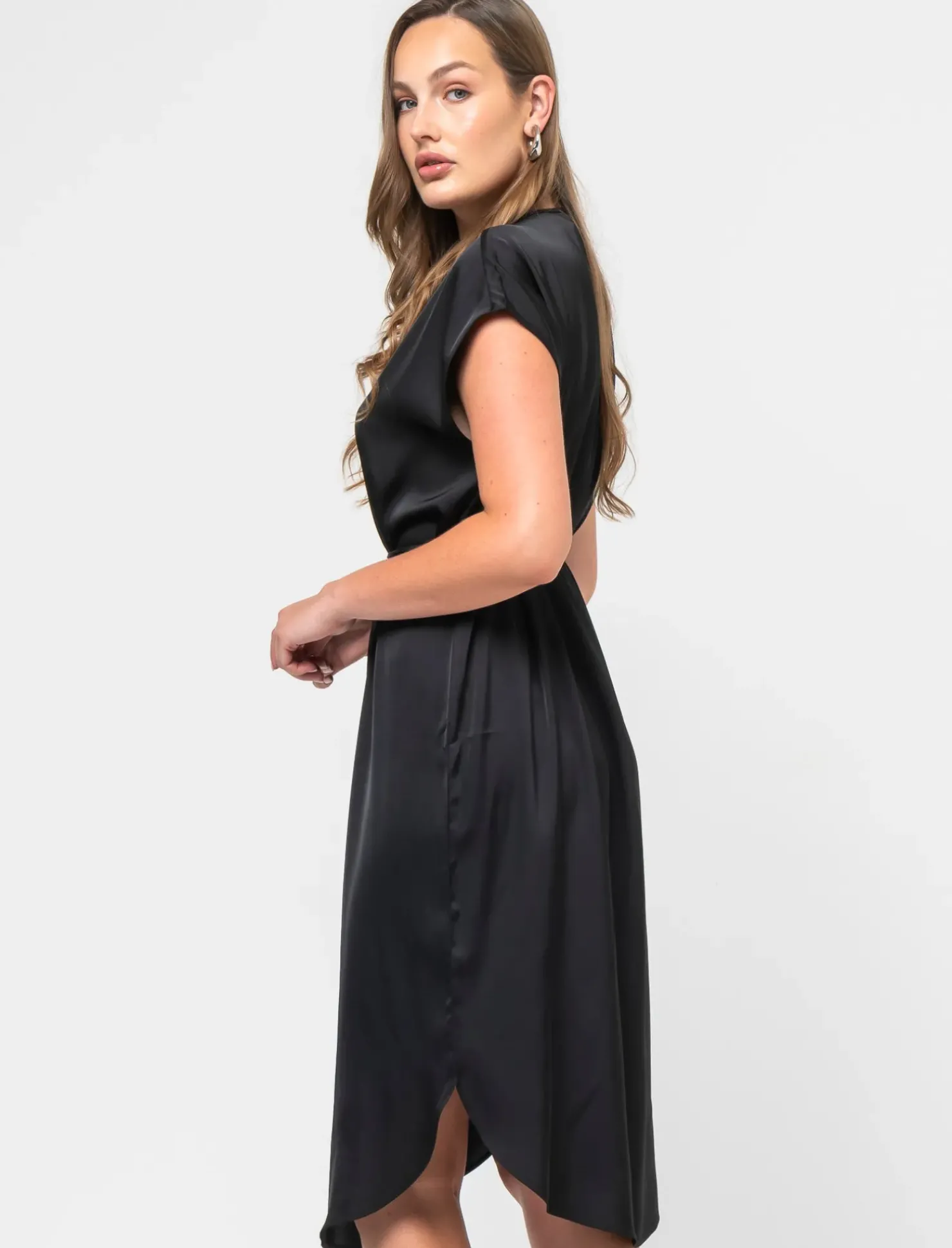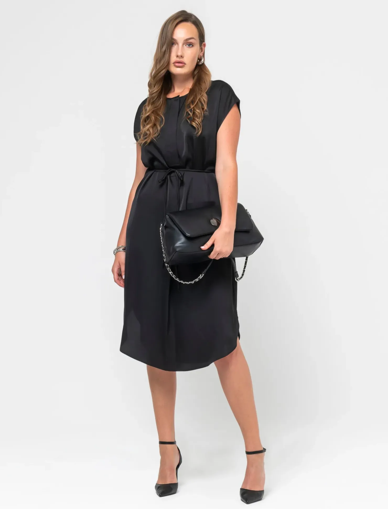 Piazza Italia Abito midi mezza manica vestibilità regular effetto raso – Nero Best Sale