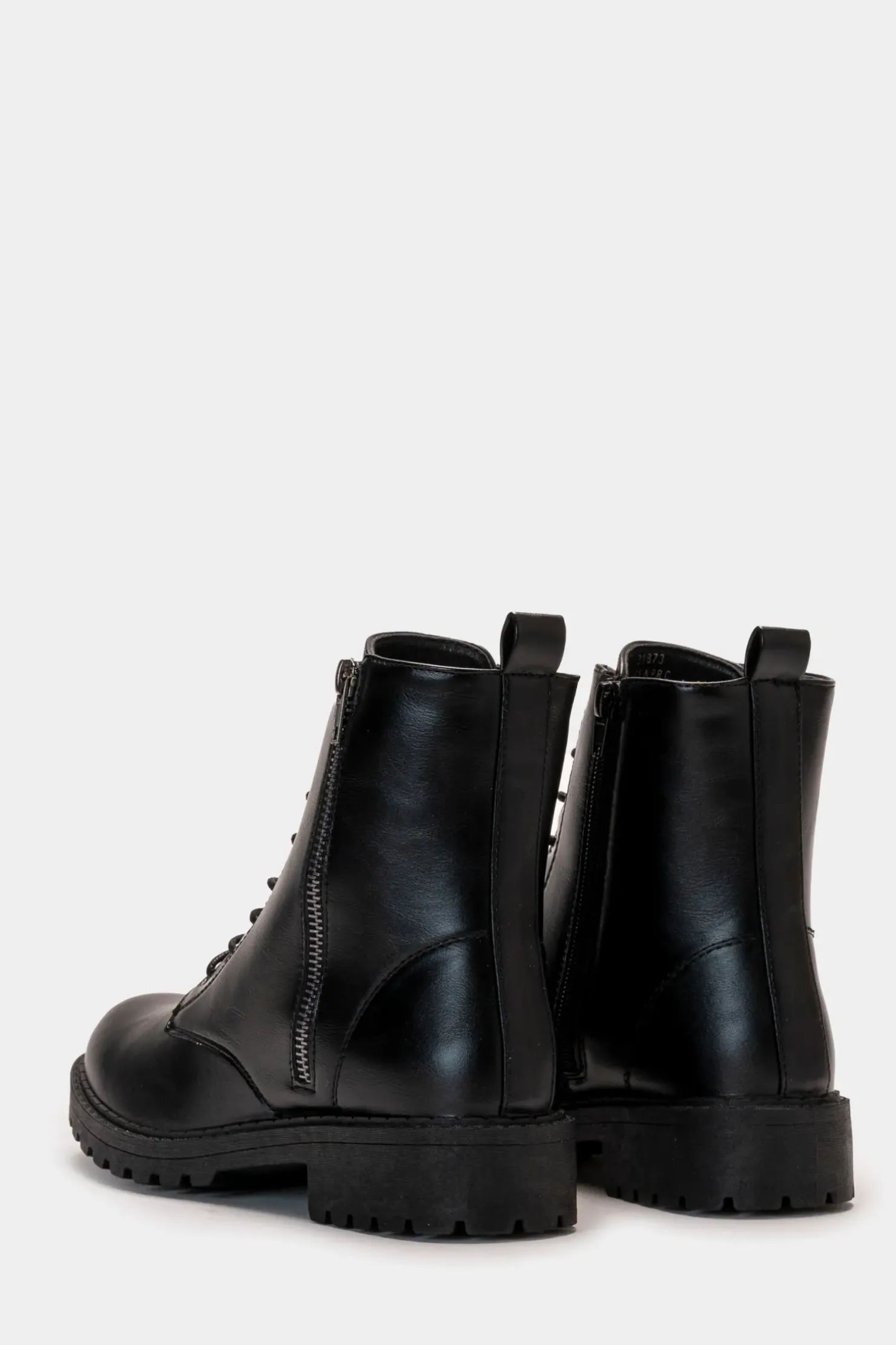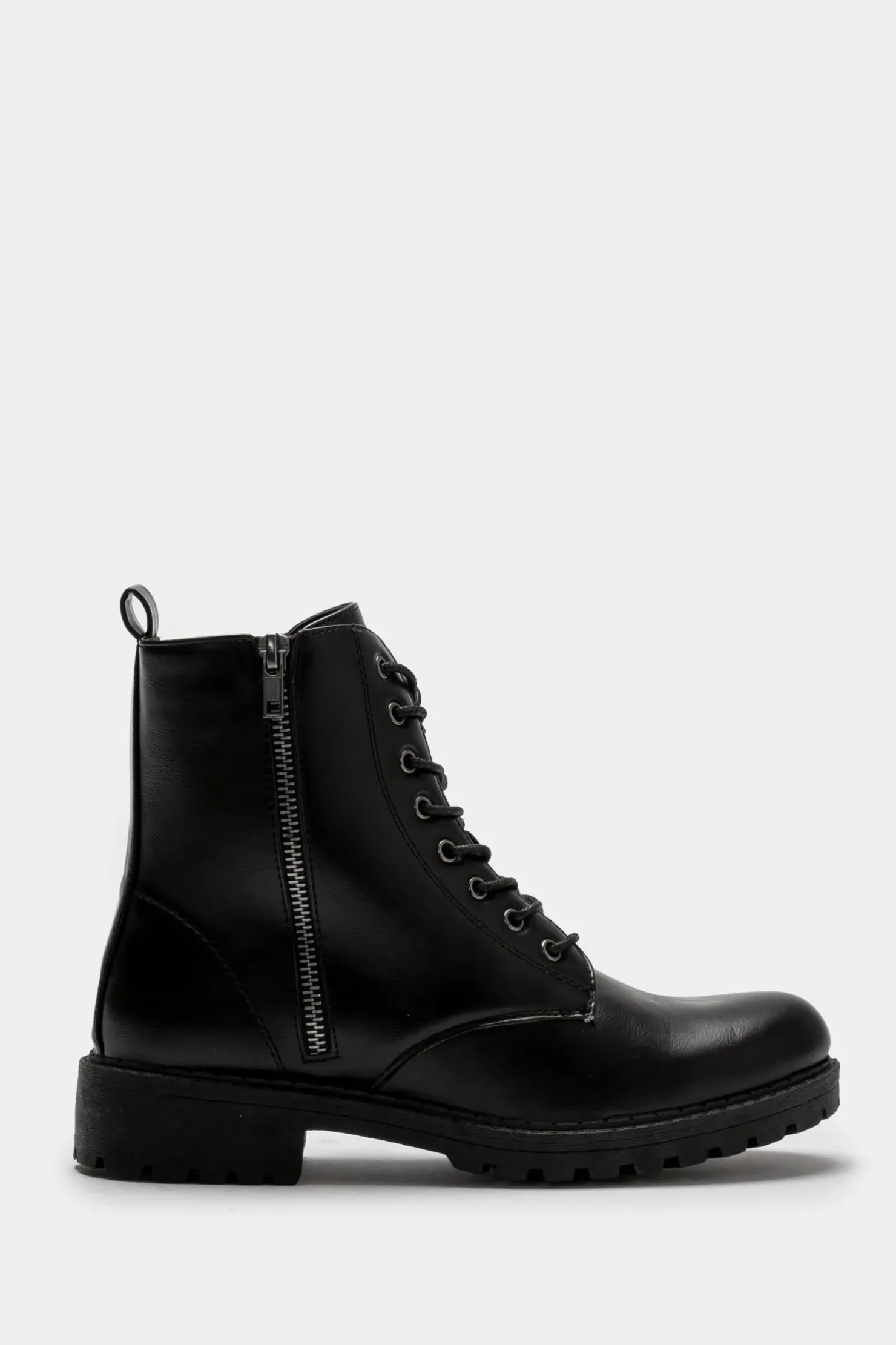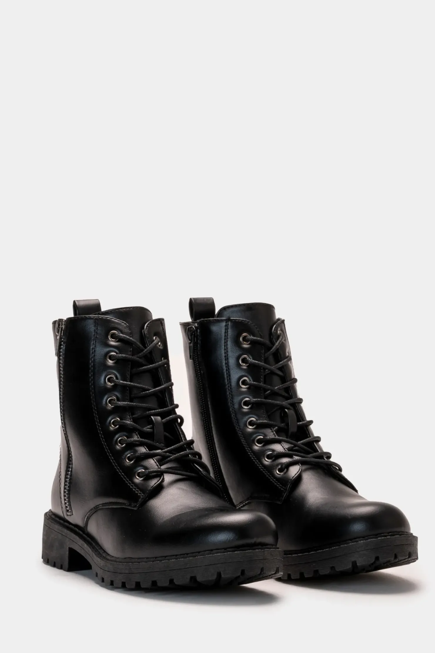Piazza Italia Anfibio con lacci, zip sul lato interno e fondo roccia. – Nero Fashion