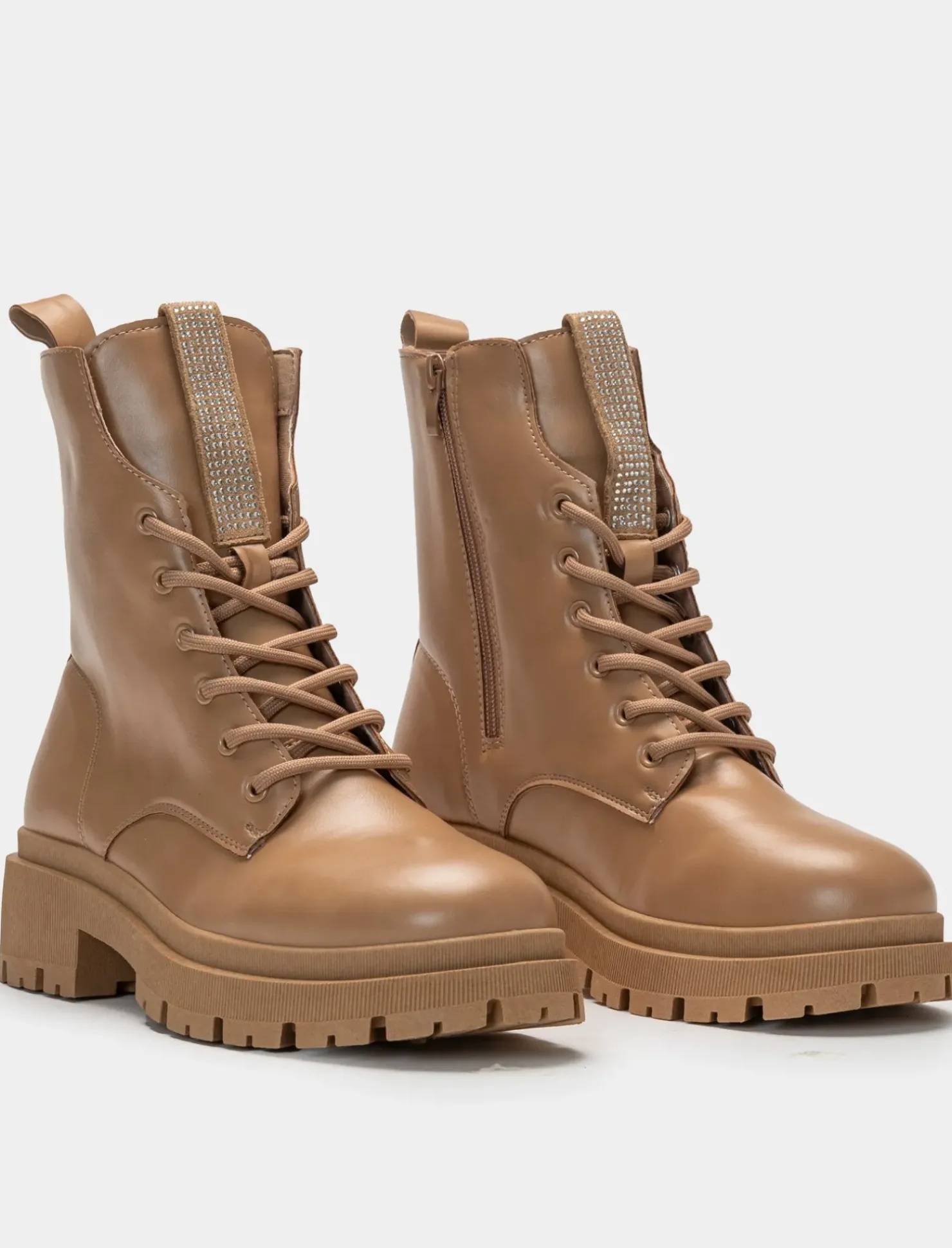 Piazza Italia Anfibio con strass con lacci e fondo roccia – Beige Store