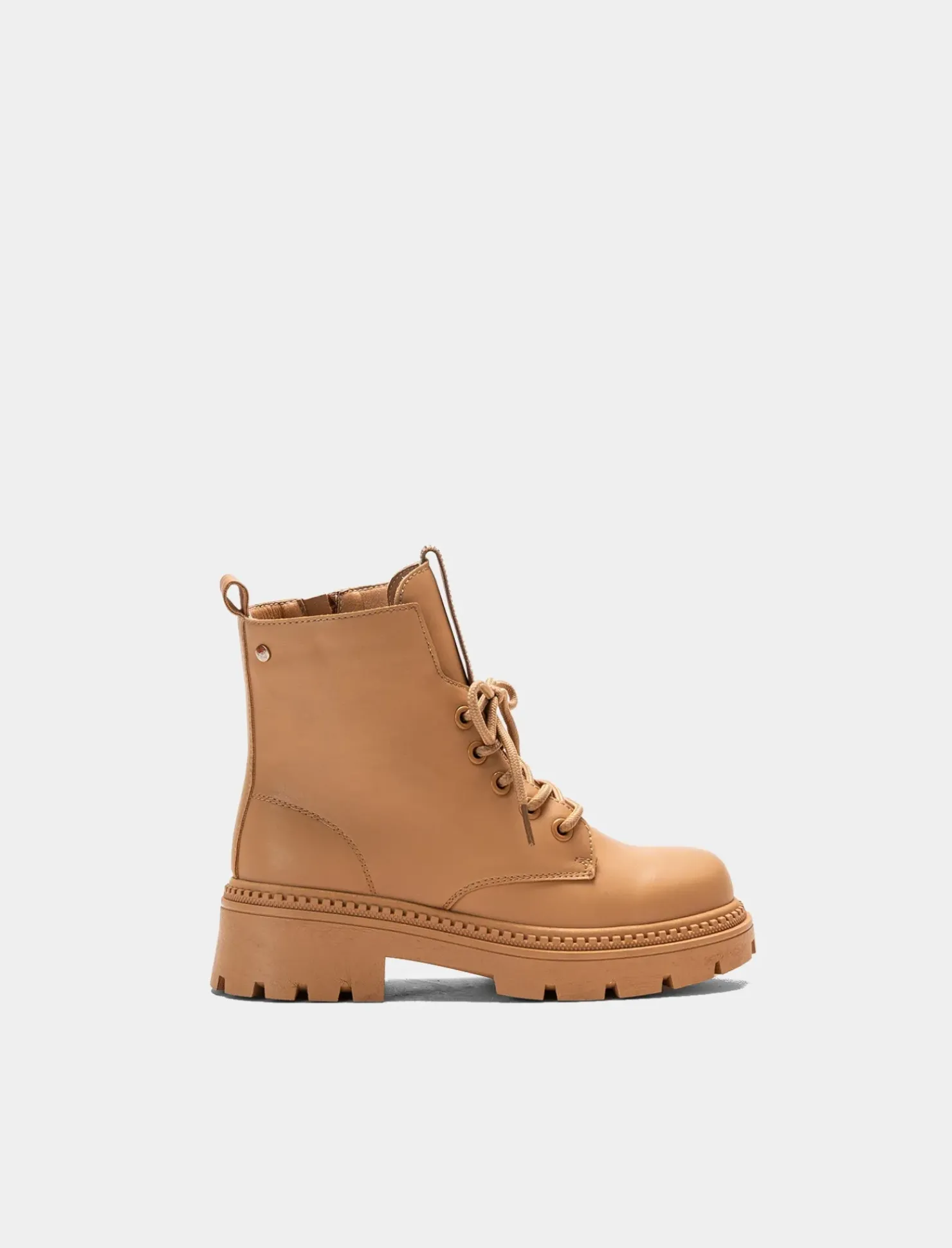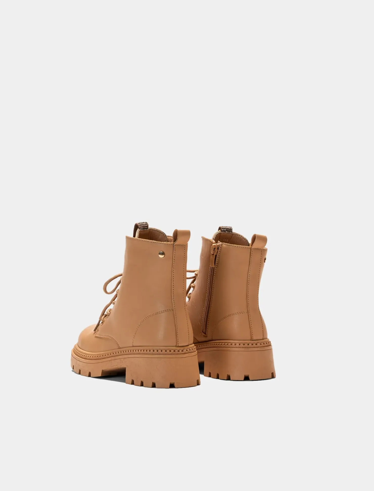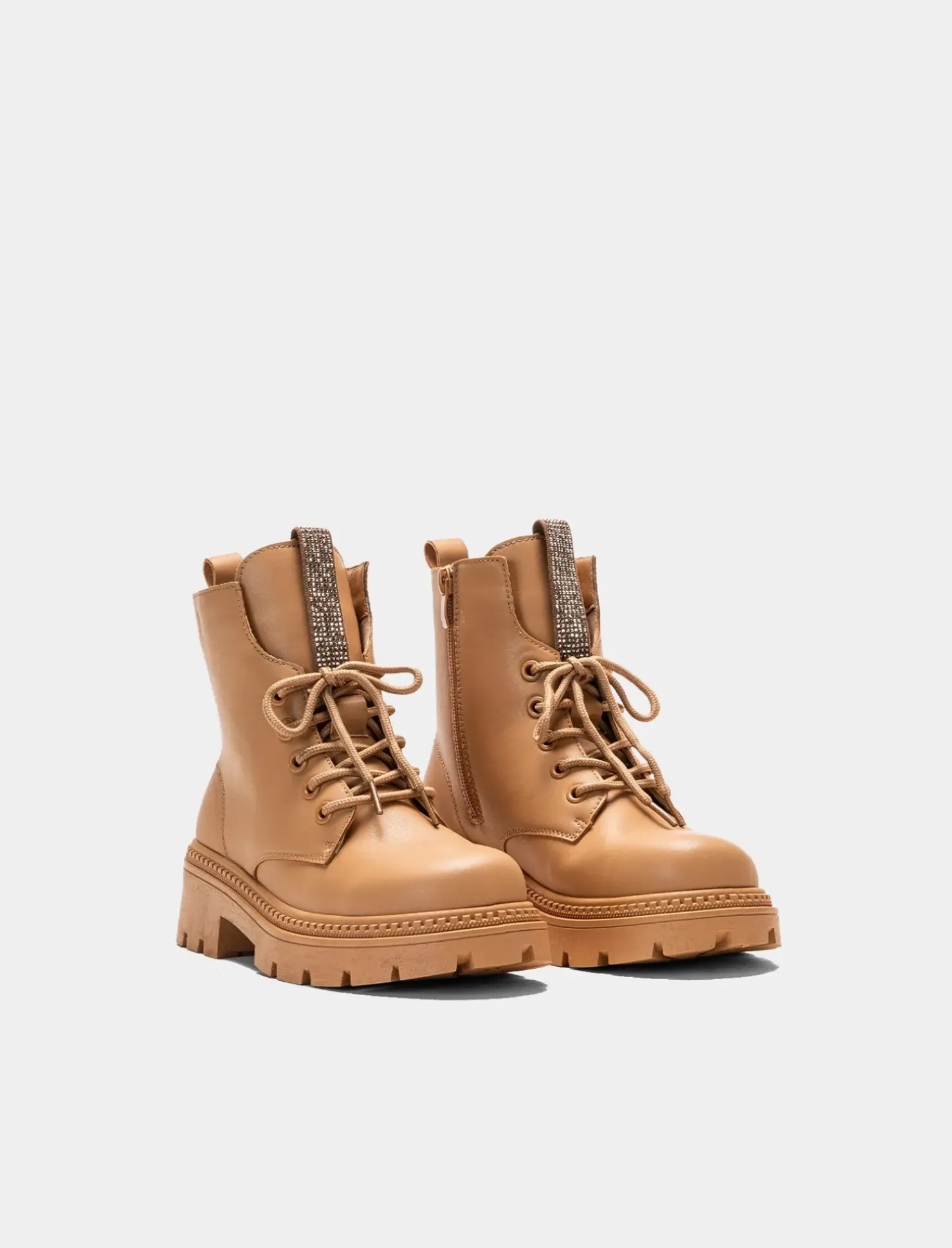 Piazza Italia Anfibio con strass con lacci, zip sul lato interno e fondo roccia – Beige Fashion