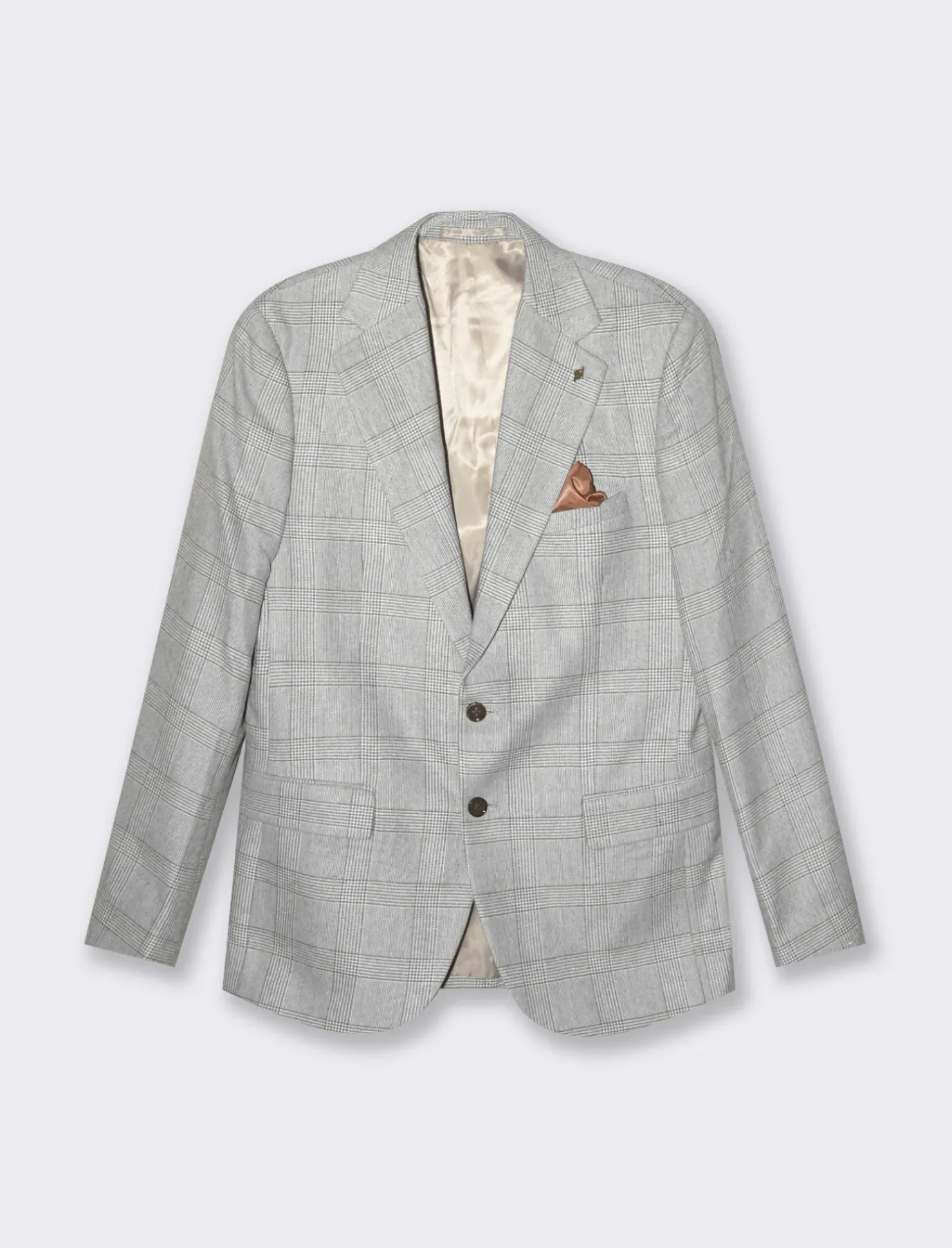 Il blazer da completo a quadri formal fit è un capo d’abbigliamento elegante e versatile, perfetto per l’uomo moderno. Caratterizzato da un colletto a revers classici, presenta una raffinata fantasia a quadri principe di galles che aggiunge un tocco di originalità. I dettagli, come i bottoni sul polsino e la tasca a filetto con pochette sul petto, esprimono un gusto distintivo. Le tasche con patta completano il look, rendendolo adatto sia per occasioni formali che per eventi più informali. Il prodotto è di colore Grigio