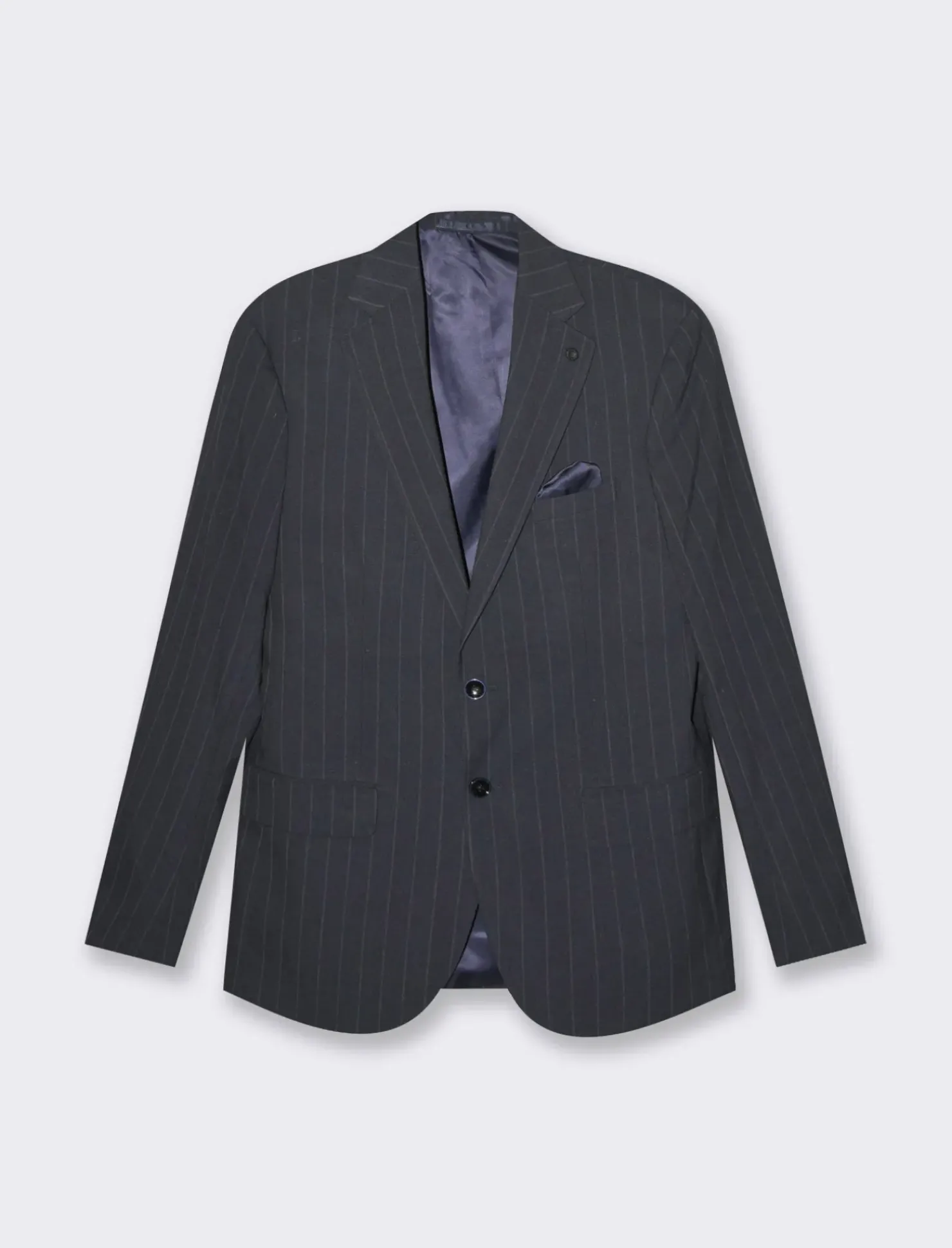 Piazza Italia Blazer in tessuto fantasia gessata con colletto a revers classici – Blu Discount