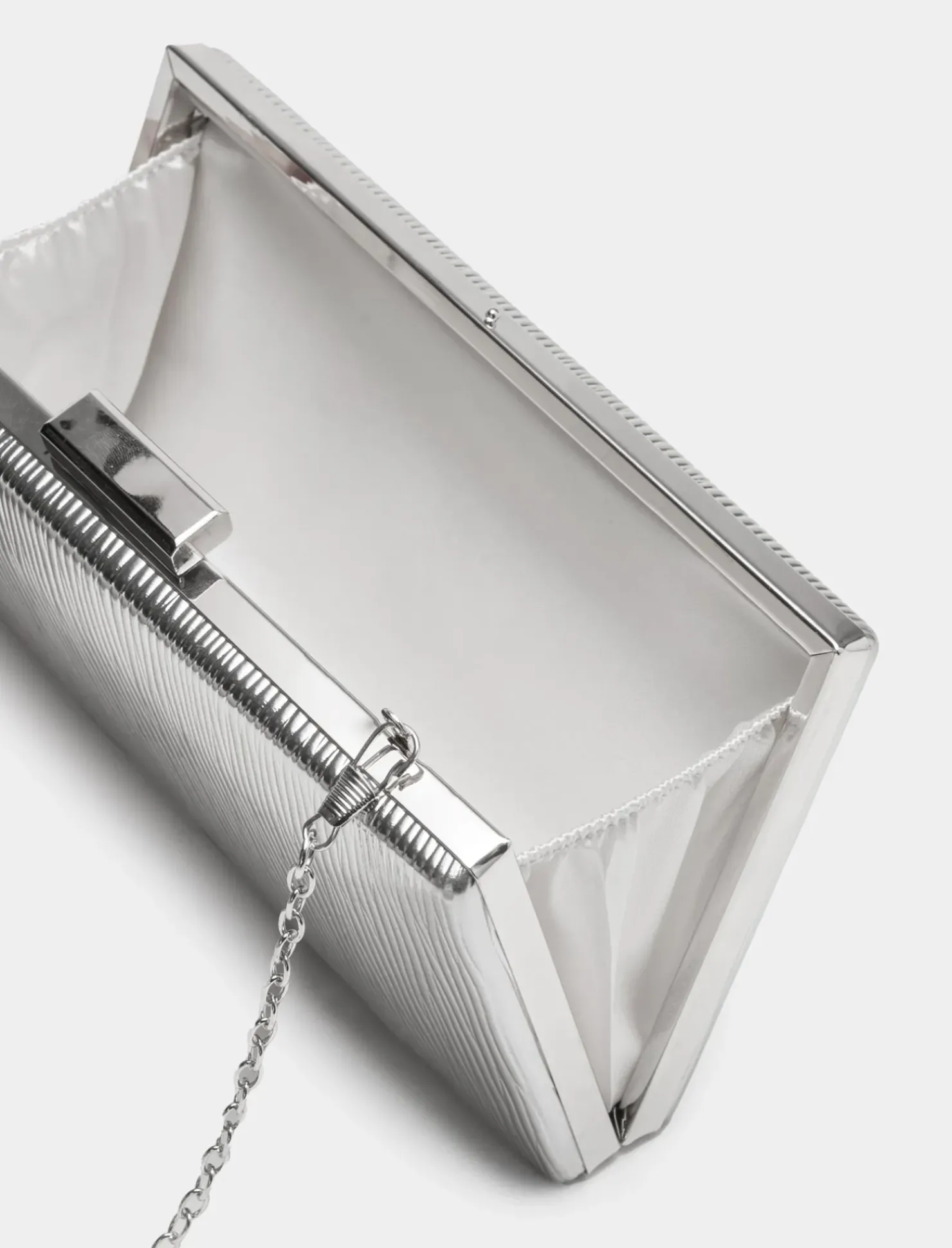 Piazza Italia Borsa da donna clutch in pvc effetto plissè con tracolla a catena – Argento Cheap