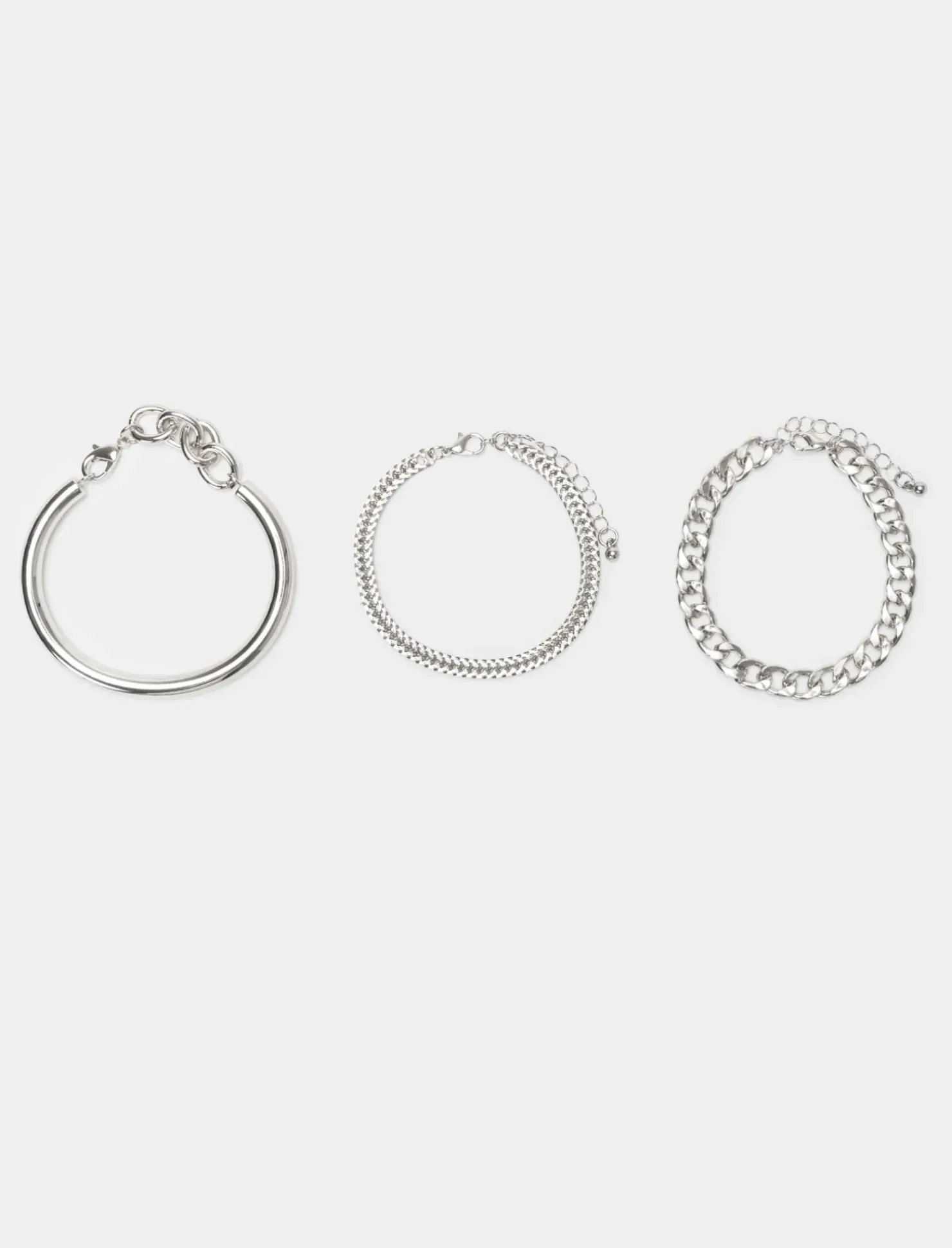 Piazza Italia Bracciale da donna a 3 bracciali rigidi e catene – Argento New