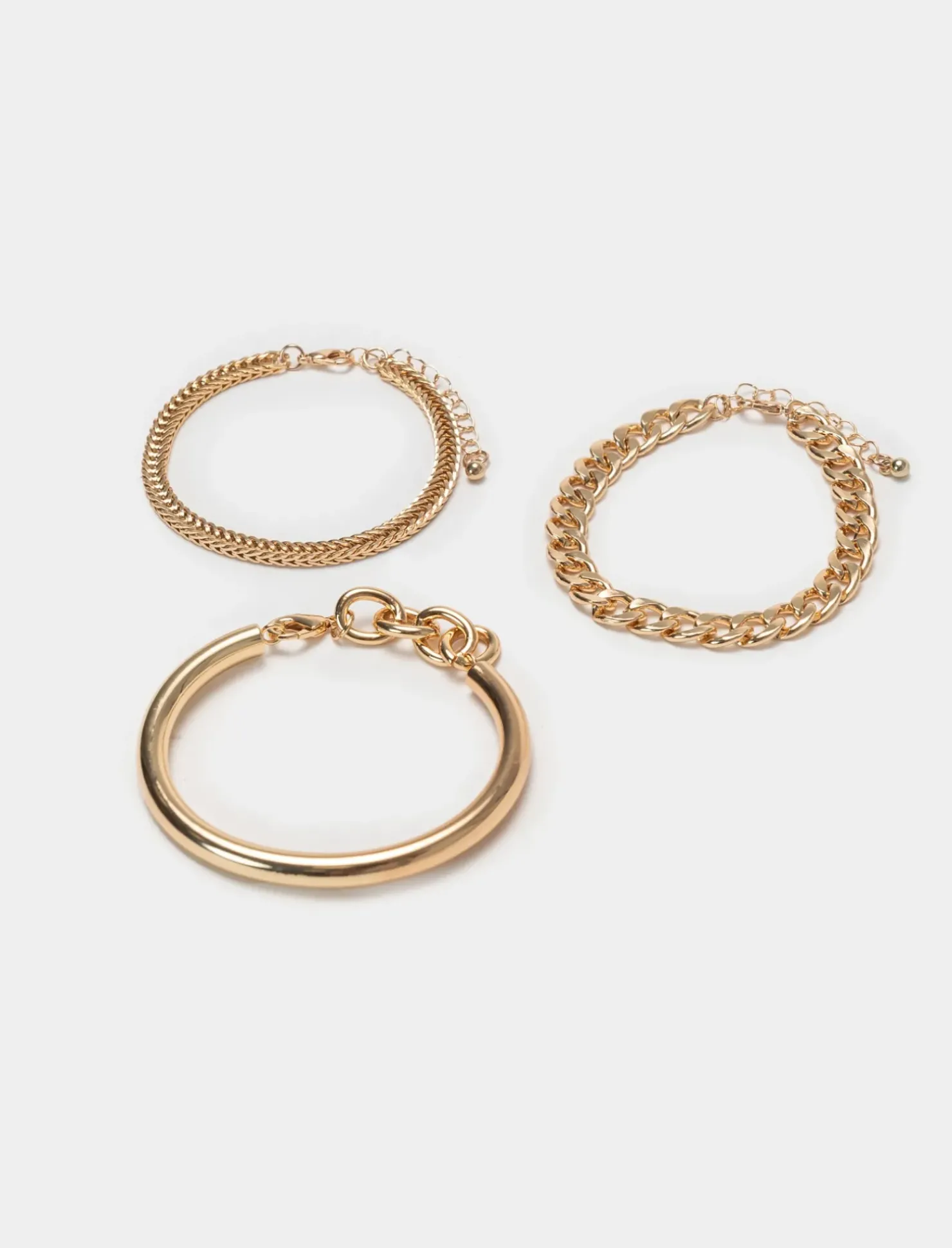 Piazza Italia Bracciale da donna a 3 bracciali rigidi e catene – Oro Hot