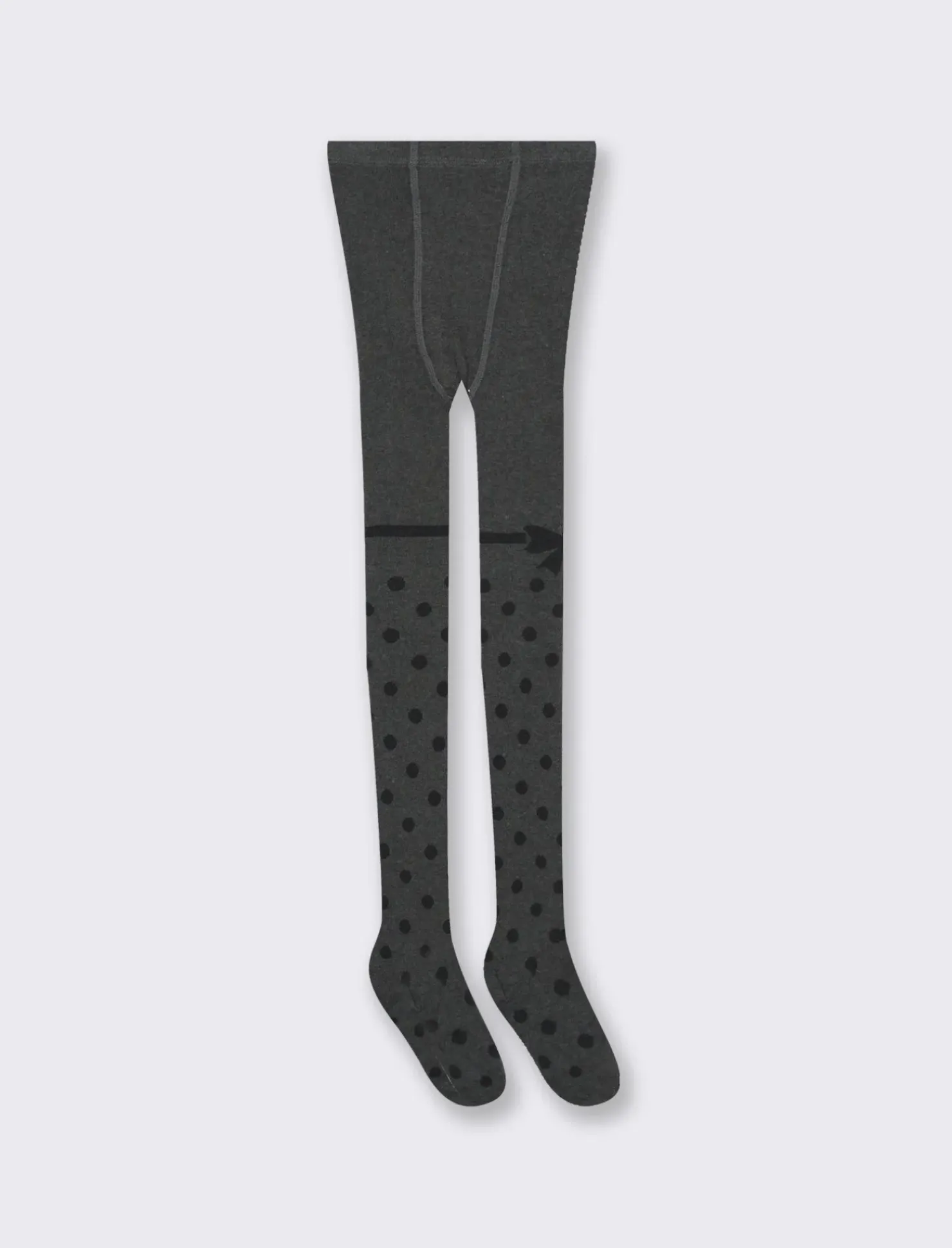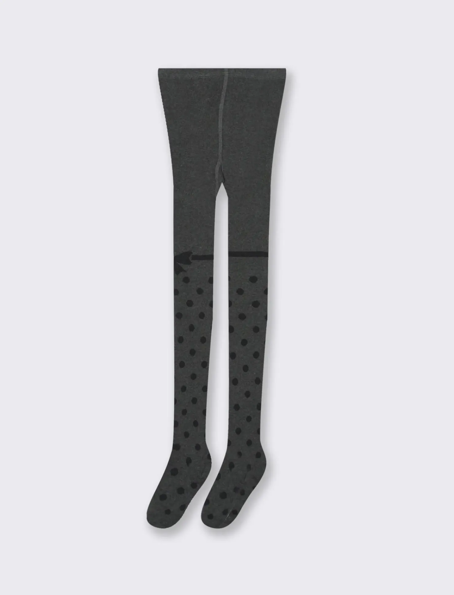 Calze francesine da bambina con lavorazione jacquard a pois e fiocco laterale Il prodotto è di colore Grigio mel.