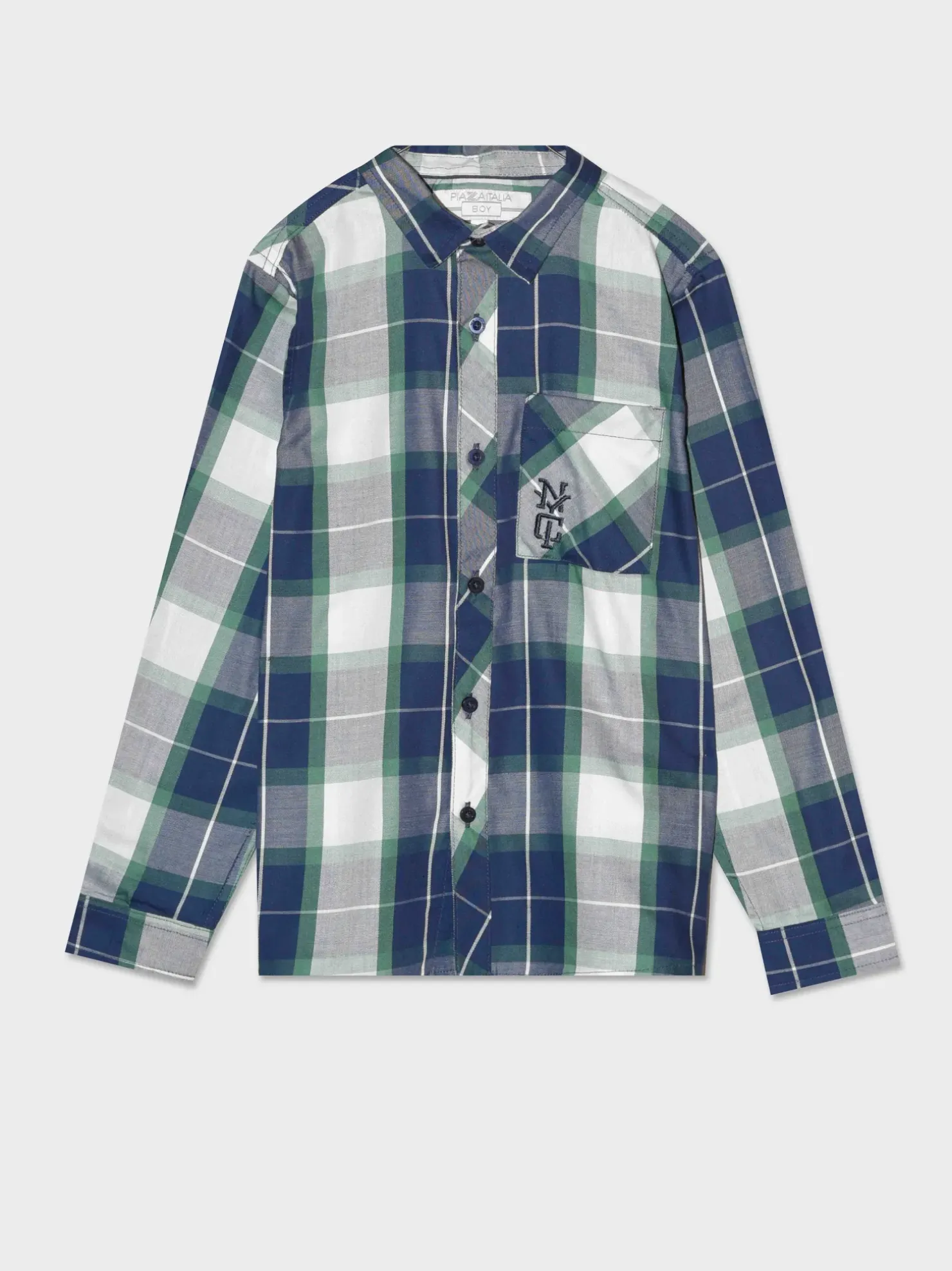 Camicia a quadri per bambino, perfetta per un look casual e alla moda. Realizzata con maniche lunghe, tasca anteriore e ricamo, disponibile in due varianti colore. Ideale per completare l’outfit dei più piccoli con stile e comfort. Il prodotto è di colore Blu