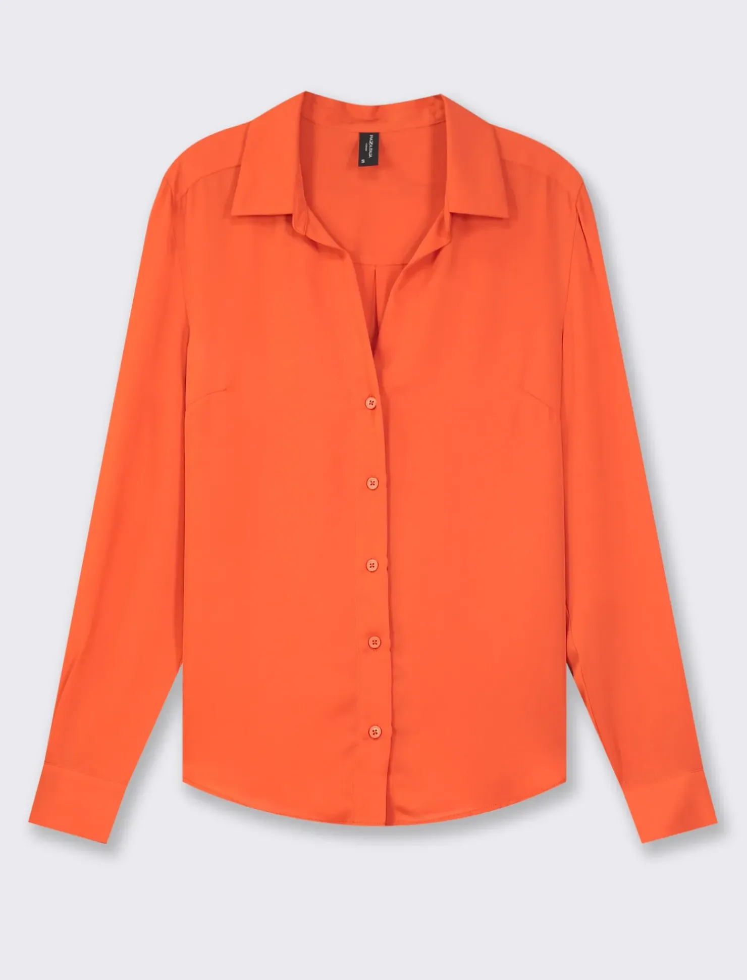 Camicia basic dal taglio regolare, ideale per ogni occasione. Realizzata in morbido tessuto georgette, presenta uno scollo a V che valorizza il décolleté. Disponibile in diverse tonalità, è un capo versatile e comodo da indossare. Perfetta per un look casual chic o elegante, adatta a tutte le donne che cercano stile e comfort. Il prodotto è di colore Arancio