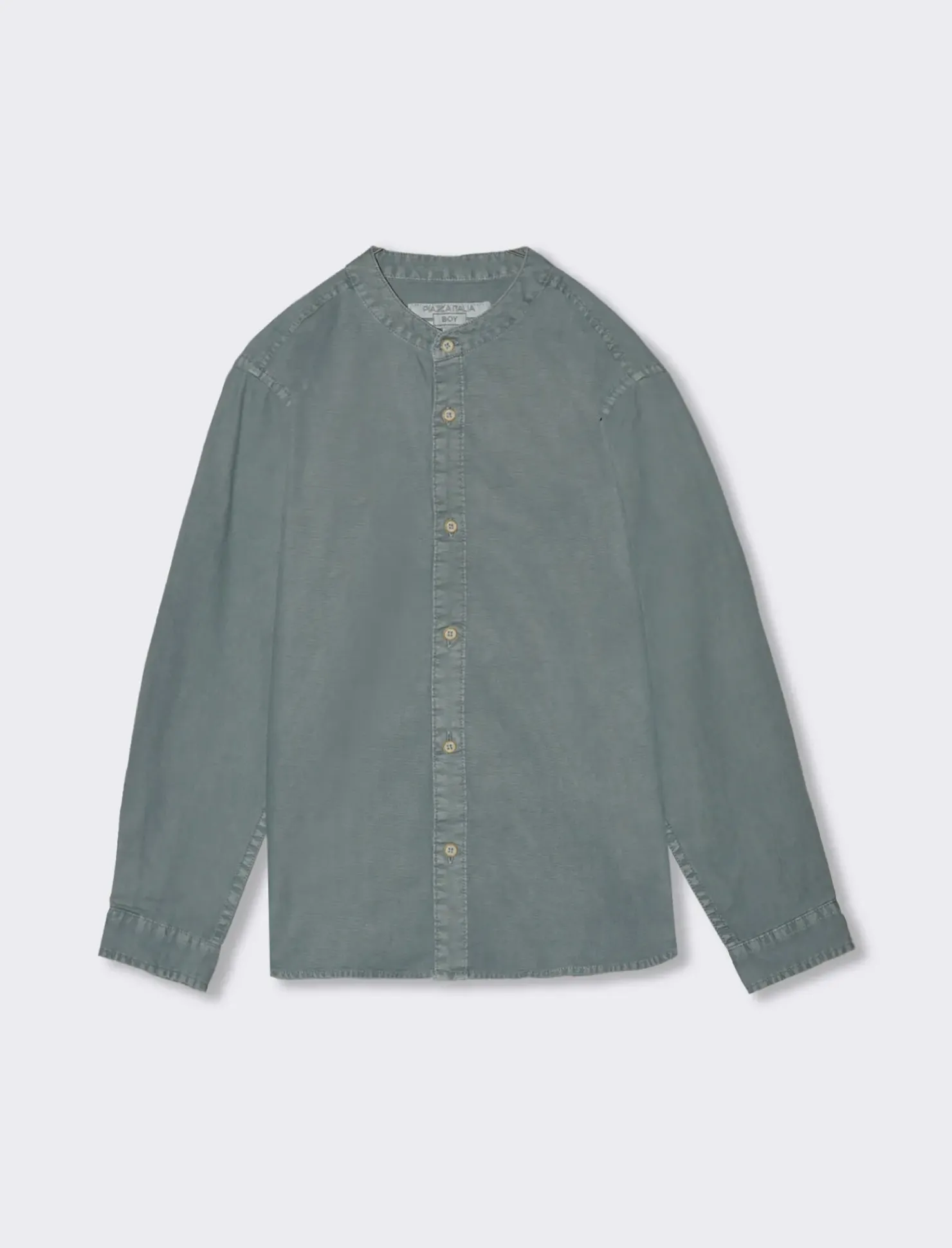 Camicia con collo collo coreano, realizzata con una speciale tintura a freddo che conferisce un aspetto unico e originale. Il design semplice e raffinato la rende ideale per completare un look casual e informale, perfetta per le giornate in città o per un incontro tra amici. Realizzata con materiali morbidi e traspiranti, offre comfort e libertà di movimento, rendendola un capo versatile da abbinare a jeans o pantaloni leggeri. Il prodotto è di colore Grigio cenere