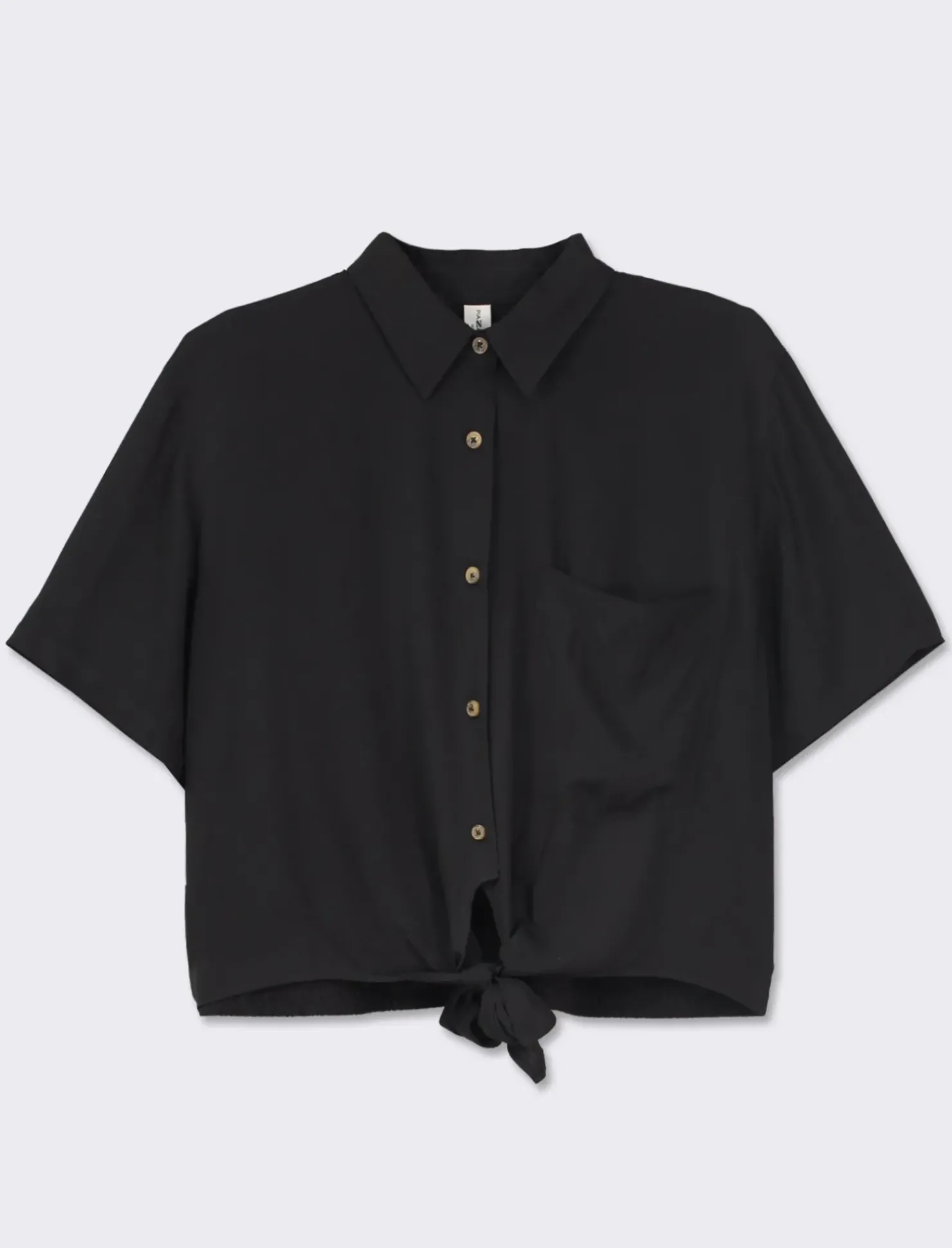 Piazza Italia Camicia crop in tessuto di viscosa leggera con collo bowling e arriccio sul retro – Nero Online