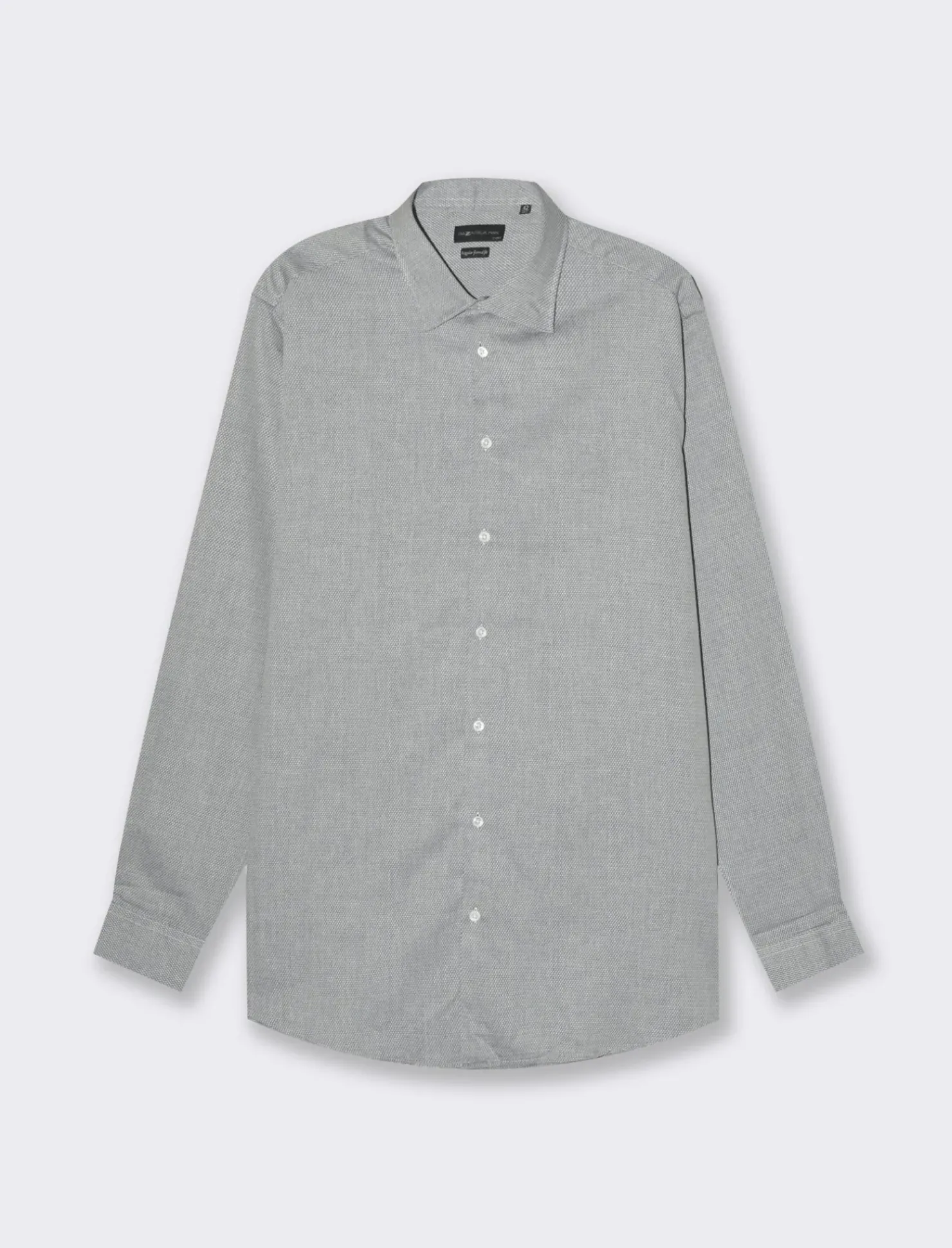 Camicia formale regular fit realizzata in tessuto di cotone strutturato, perfetta per un look elegante e professionale. Il collo francese e le maniche lunghe con bottone sul polsino conferiscono un tocco di classe in più. La chiusura frontale con abbottonatura a vista completa il design raffinato di questo capo, ideale per l’uomo moderno che ama distinguersi con stile. Il prodotto è di colore Grigio