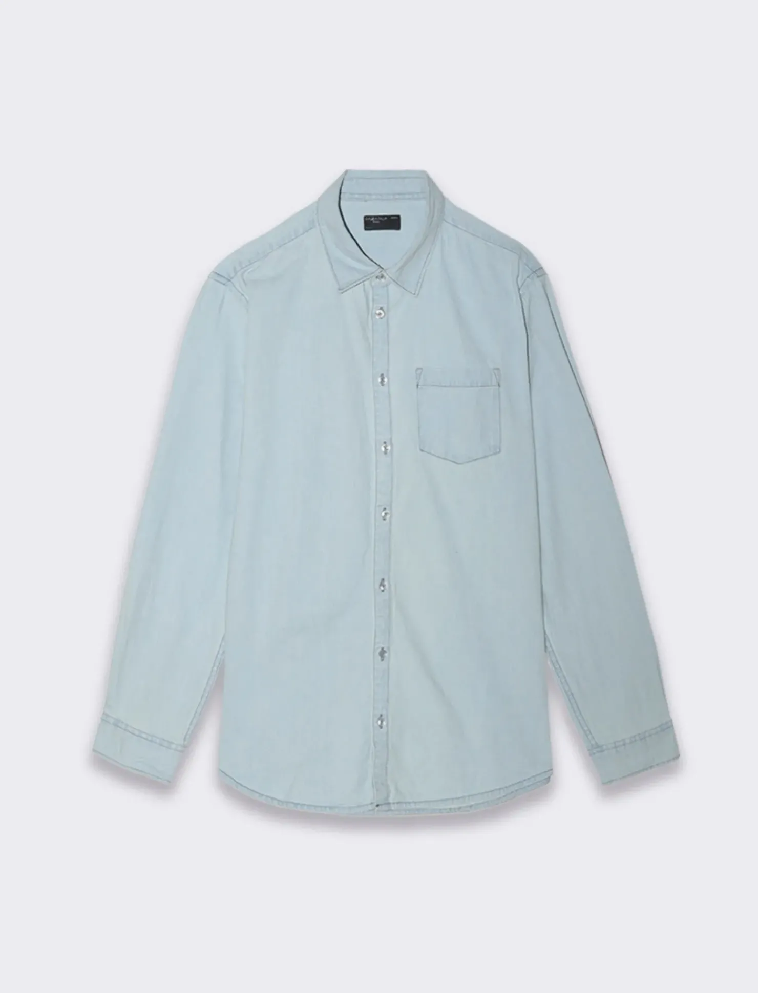 Camicia in denim dal taglio regular fit, perfetta per un look casual ma curato. Caratterizzata da un colletto a revers e maniche lunghe con bottone sul polsino, questa camicia presenta una pratica tasca applicata sul petto, ideale per riporre piccoli oggetti. L’effetto slavato conferisce un tocco vintage e distintivo, mentre la chiusura frontale con bottoni aggiunge un elemento di praticità. Il prodotto è di colore Denim chiaro