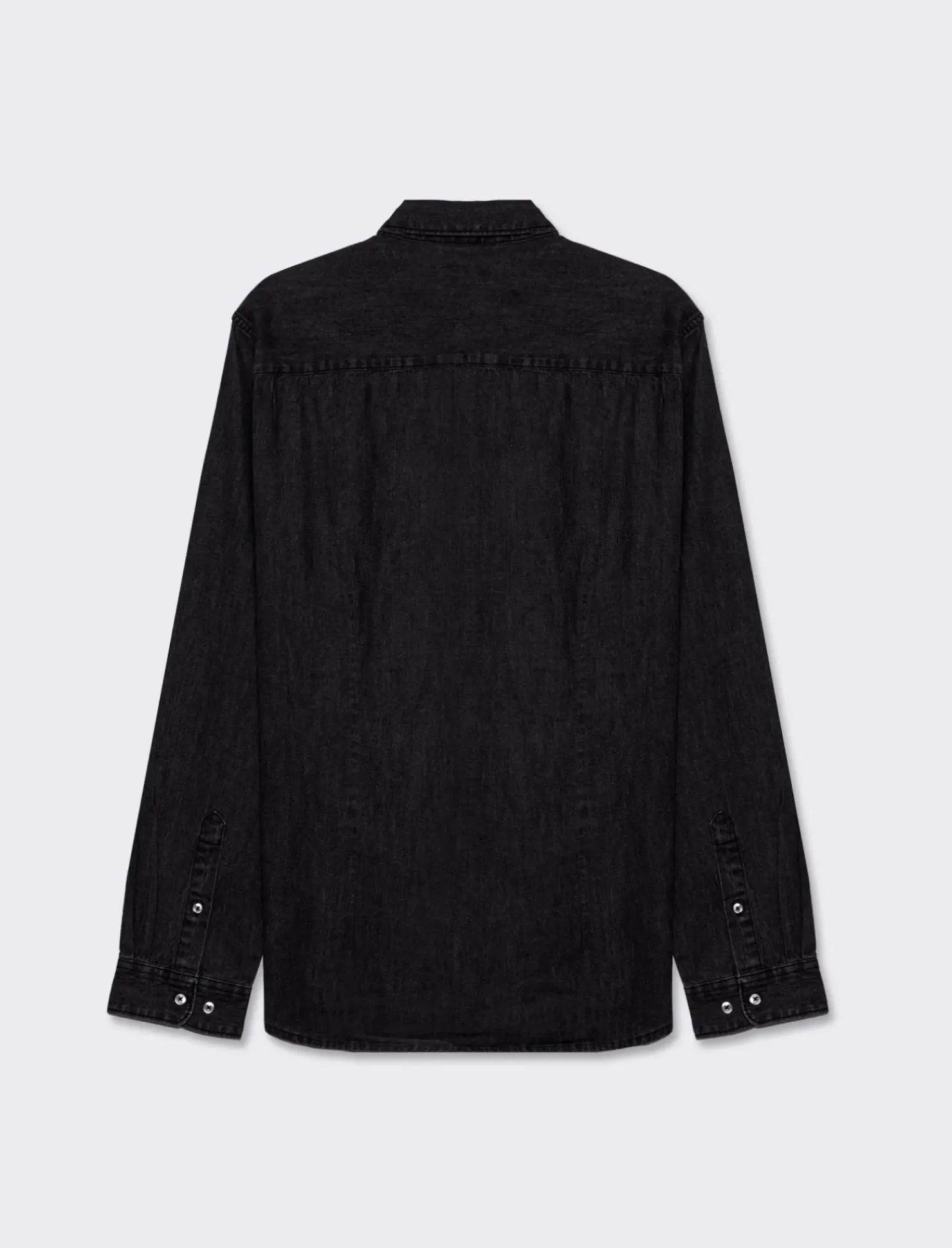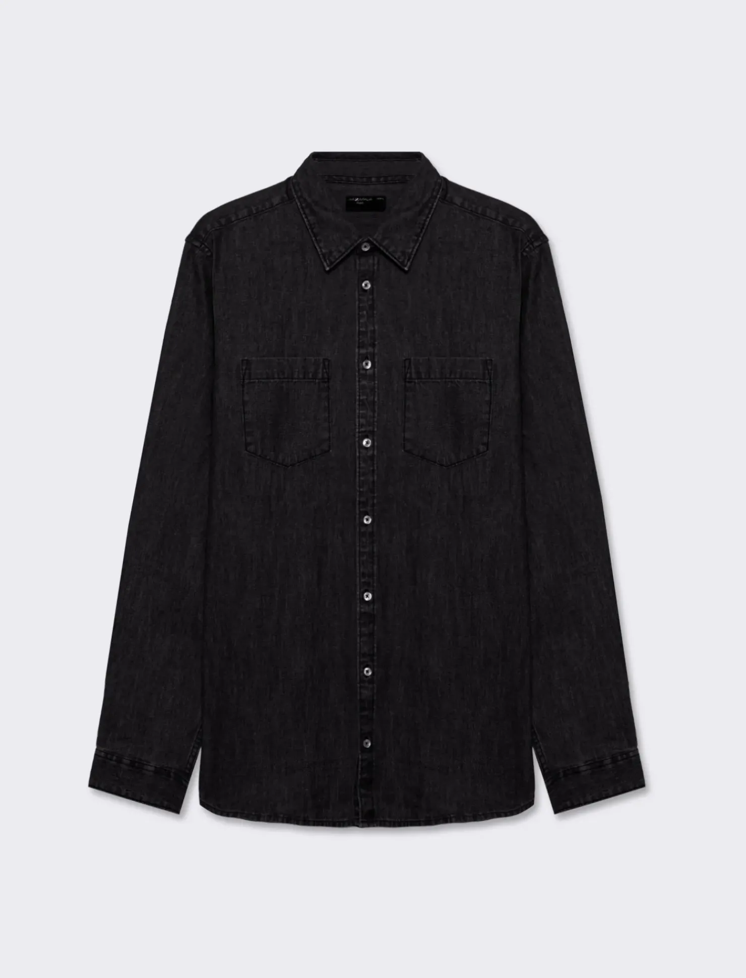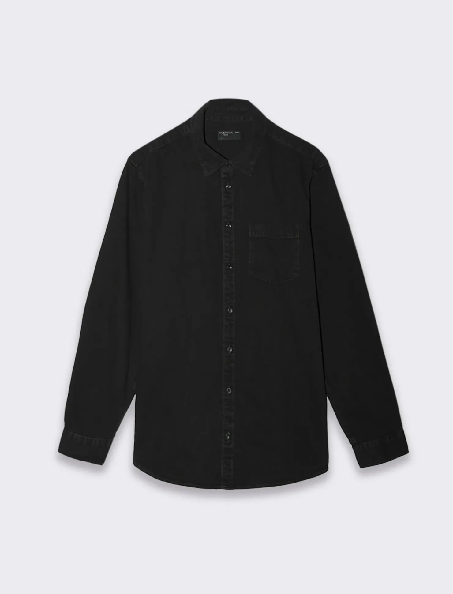 Camicia in denim dal taglio regular fit, perfetta per un look casual ma curato. Caratterizzata da un colletto a revers e maniche lunghe con bottone sul polsino, questa camicia presenta una pratica tasca applicata sul petto, ideale per riporre piccoli oggetti. L’effetto slavato conferisce un tocco vintage e distintivo, mentre la chiusura frontale con bottoni aggiunge un elemento di praticità. Il prodotto è di colore Nero
