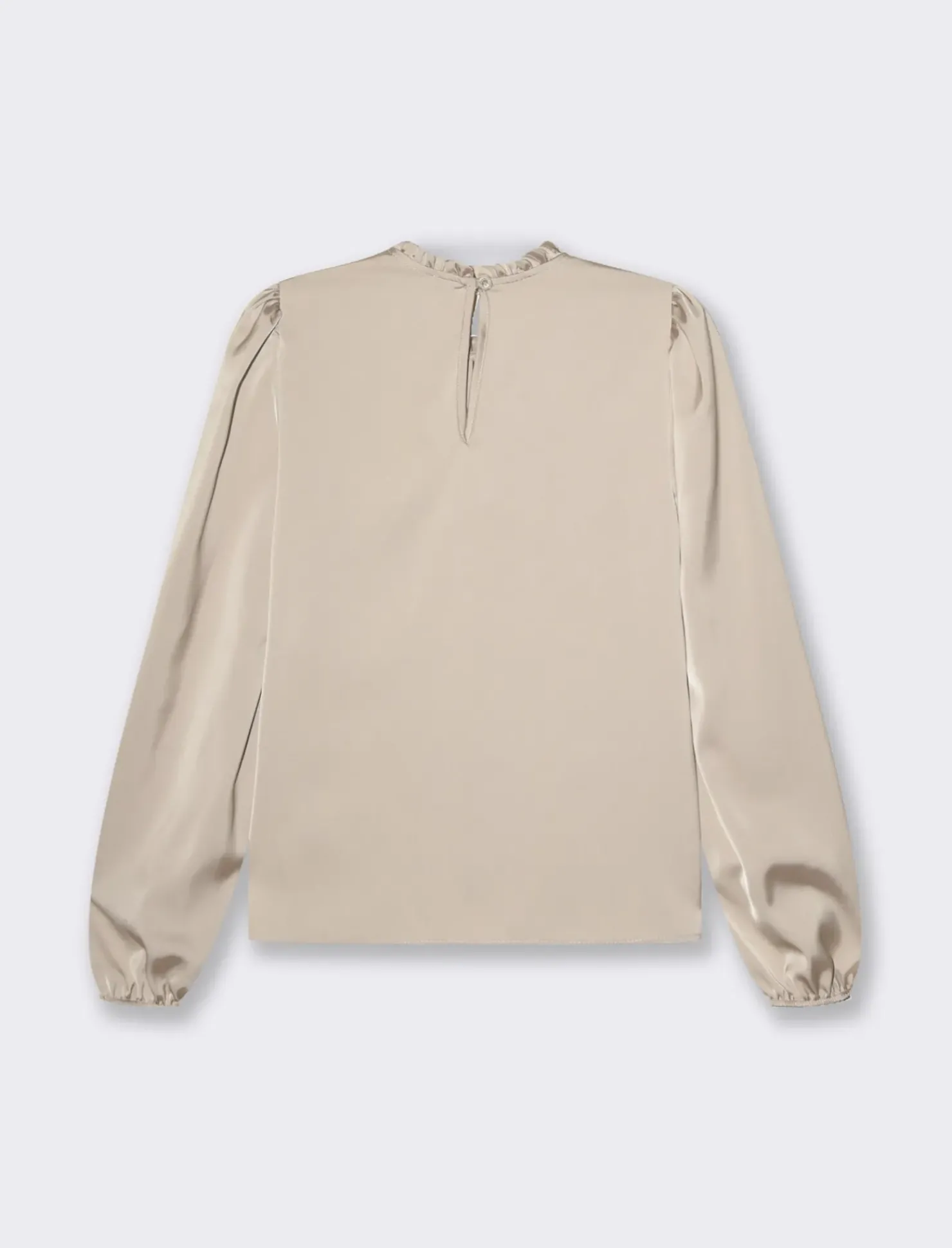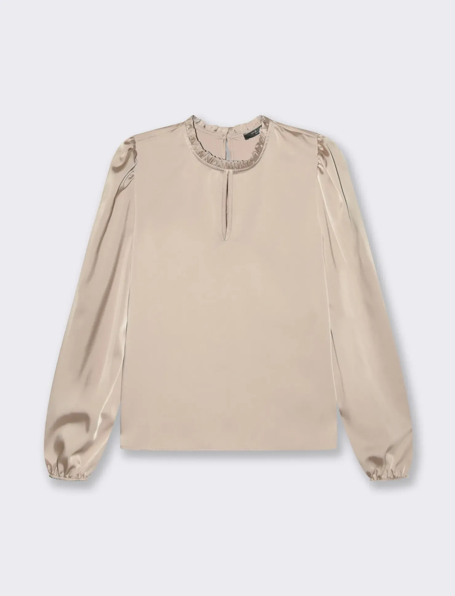 Piazza Italia Camicia manica lunga a girocollo con rouches e apertura a goccia – Beige Online