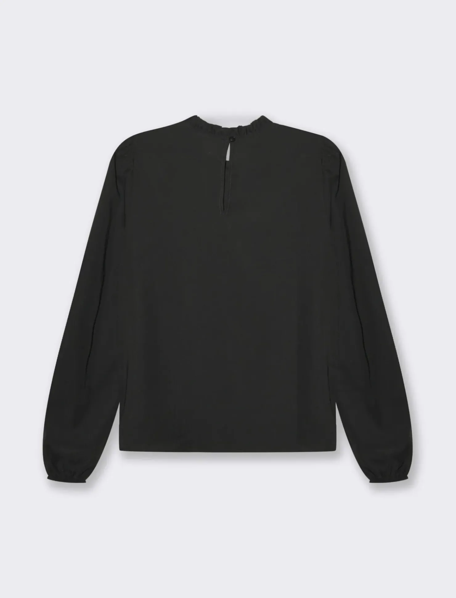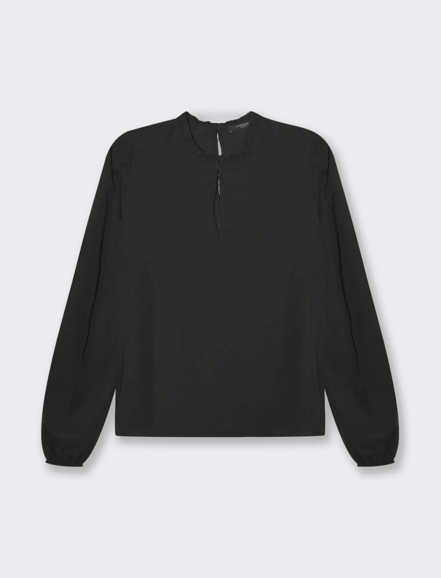 Piazza Italia Camicia manica lunga a girocollo con rouches e apertura a goccia – Nero Best Sale