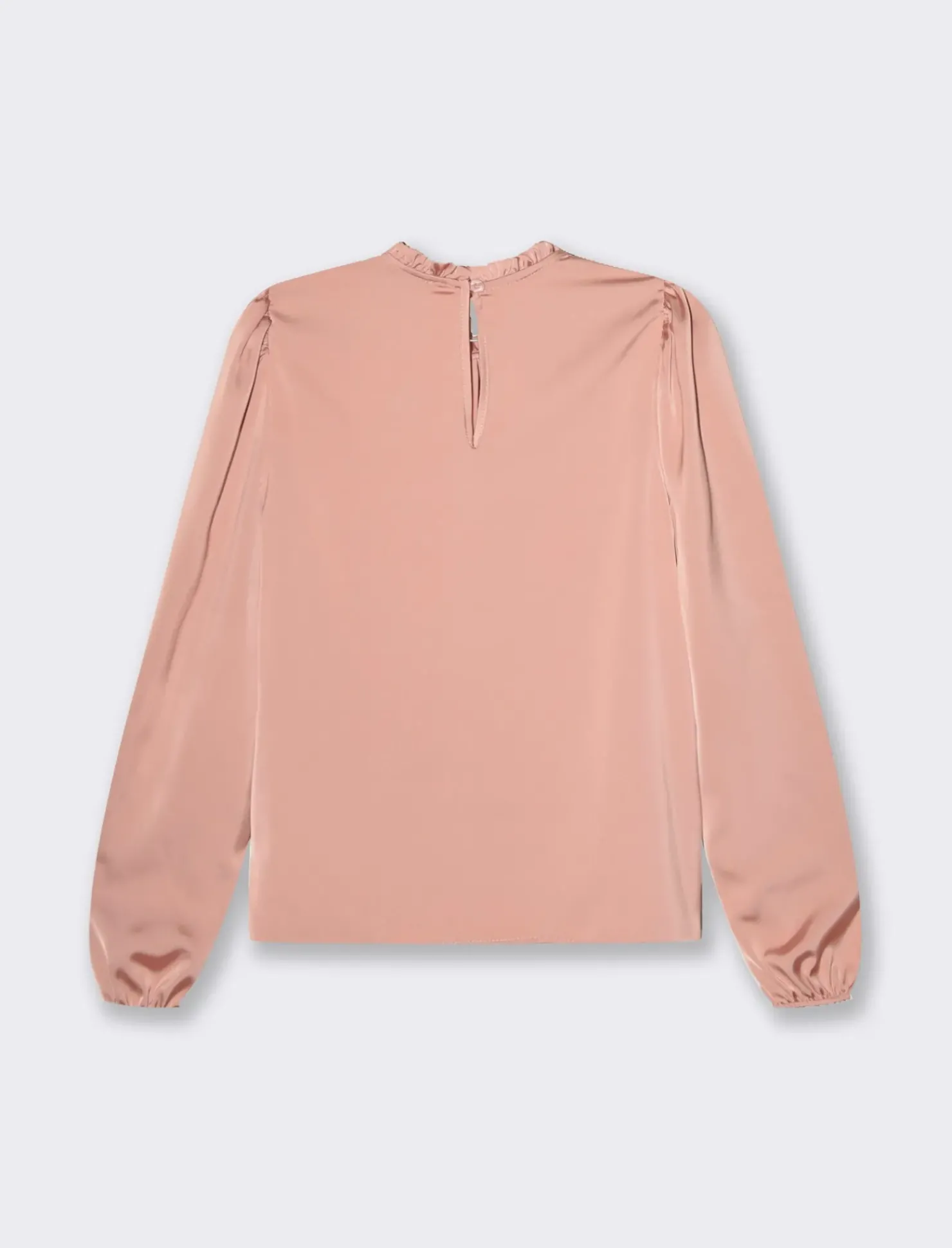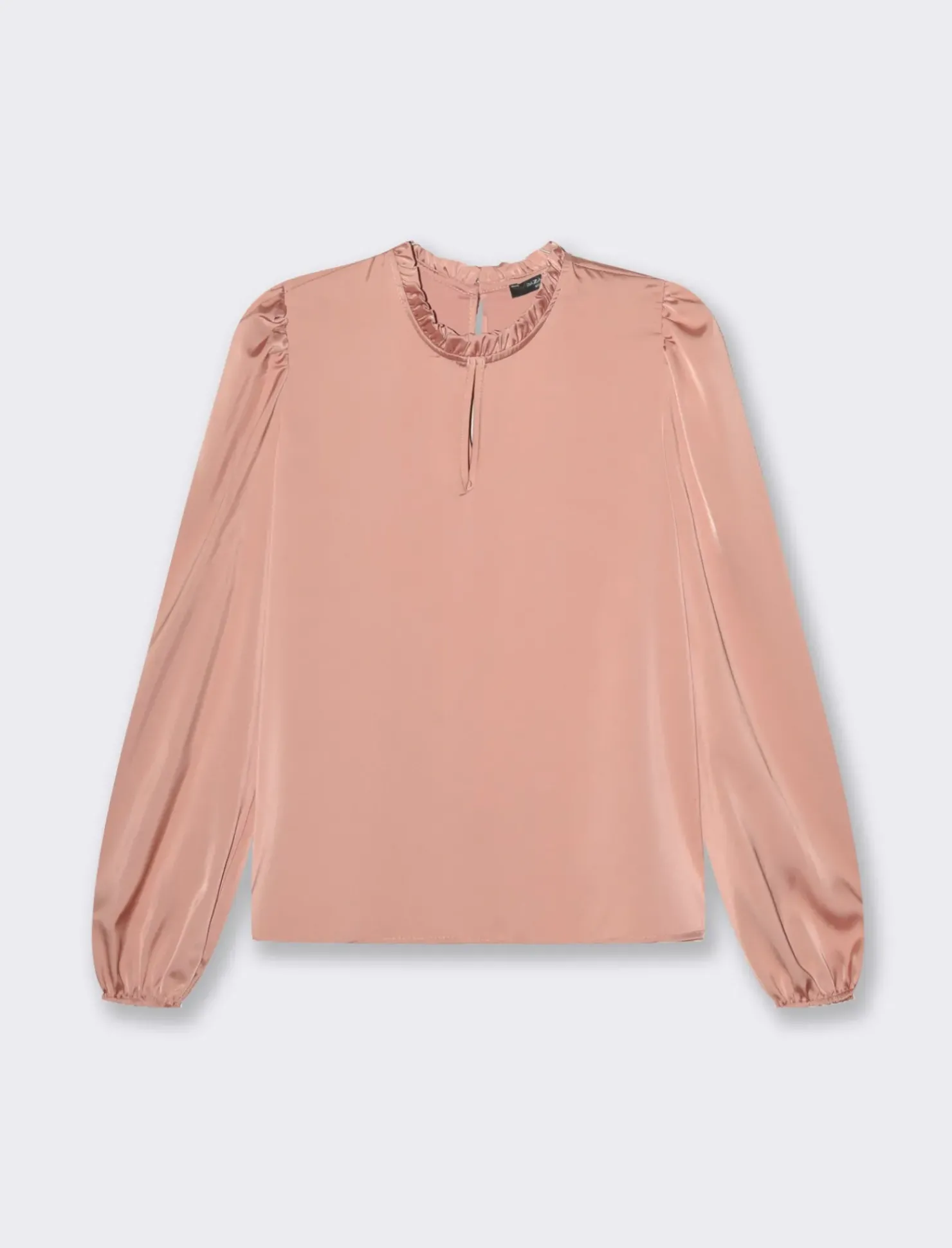 Piazza Italia Camicia manica lunga a girocollo con rouches e apertura a goccia – Rosa Online