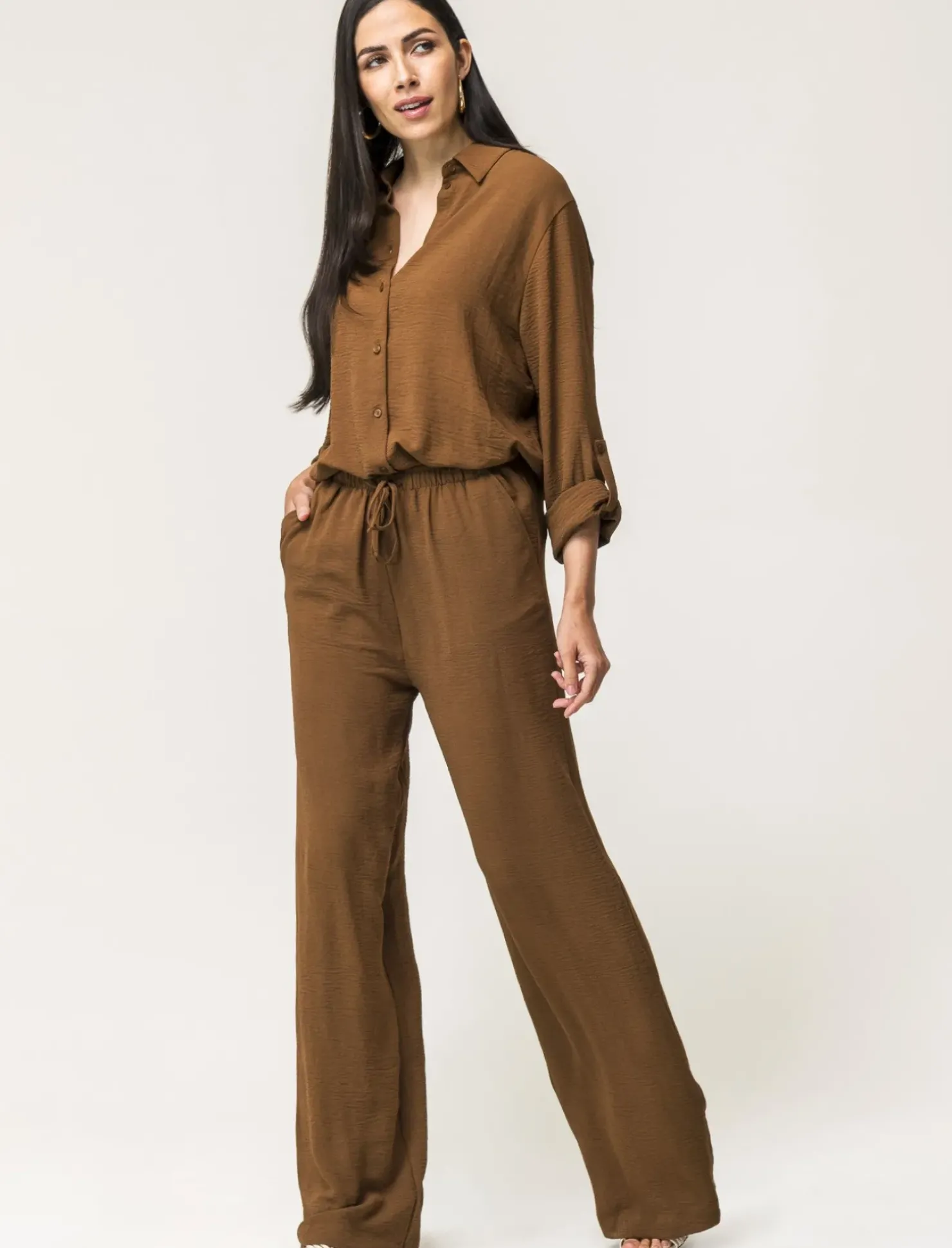Camicia manica lunga donna in tessuto fluido, perfetta per un look casual ma curato. Il taglio moderno con spalla scesa e alette per risvoltare la manica conferisce un tocco di originalità. Disponibile in diverse tonalità, ideale per completare il tuo outfit in ogni occasione. Il prodotto è di colore Marrone tabacco