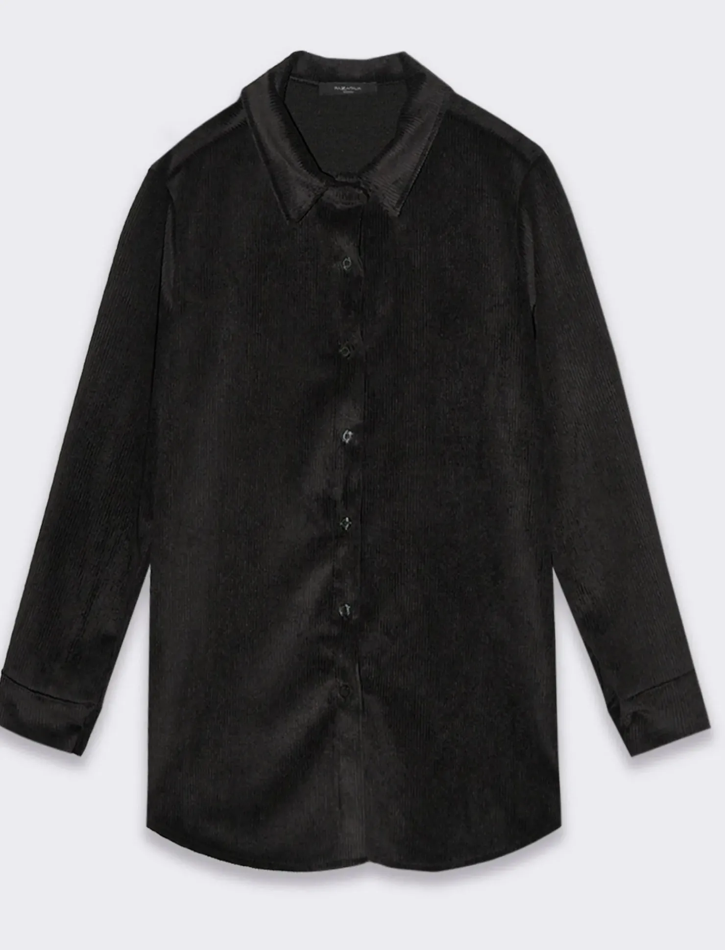 Questa camicia a maniche lunghe presenta una texture a coste, che aggiunge un tocco di raffinatezza e un aspetto tridimensionale al tessuto. Il tessuto effetto velluto dona un aspetto lussuoso e una morbidezza unica, rendendo questa camicia perfetta per occasioni speciali o per aggiungere un tocco di classe al tuo abbigliamento quotidiano. Il prodotto è di colore Nero