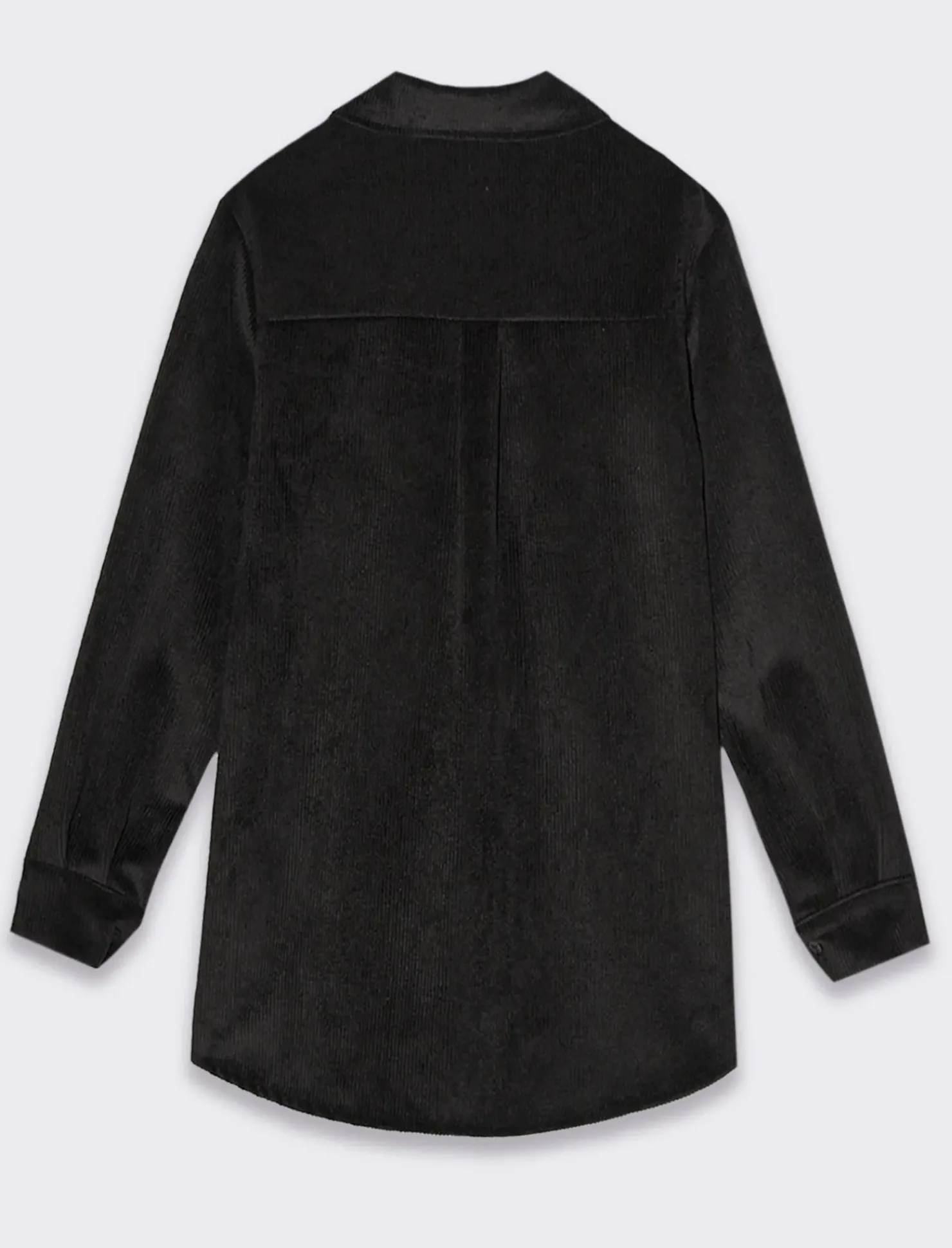 Piazza Italia Camicia mnica lunga a coste con tessuto effetto velluto – Nero Sale