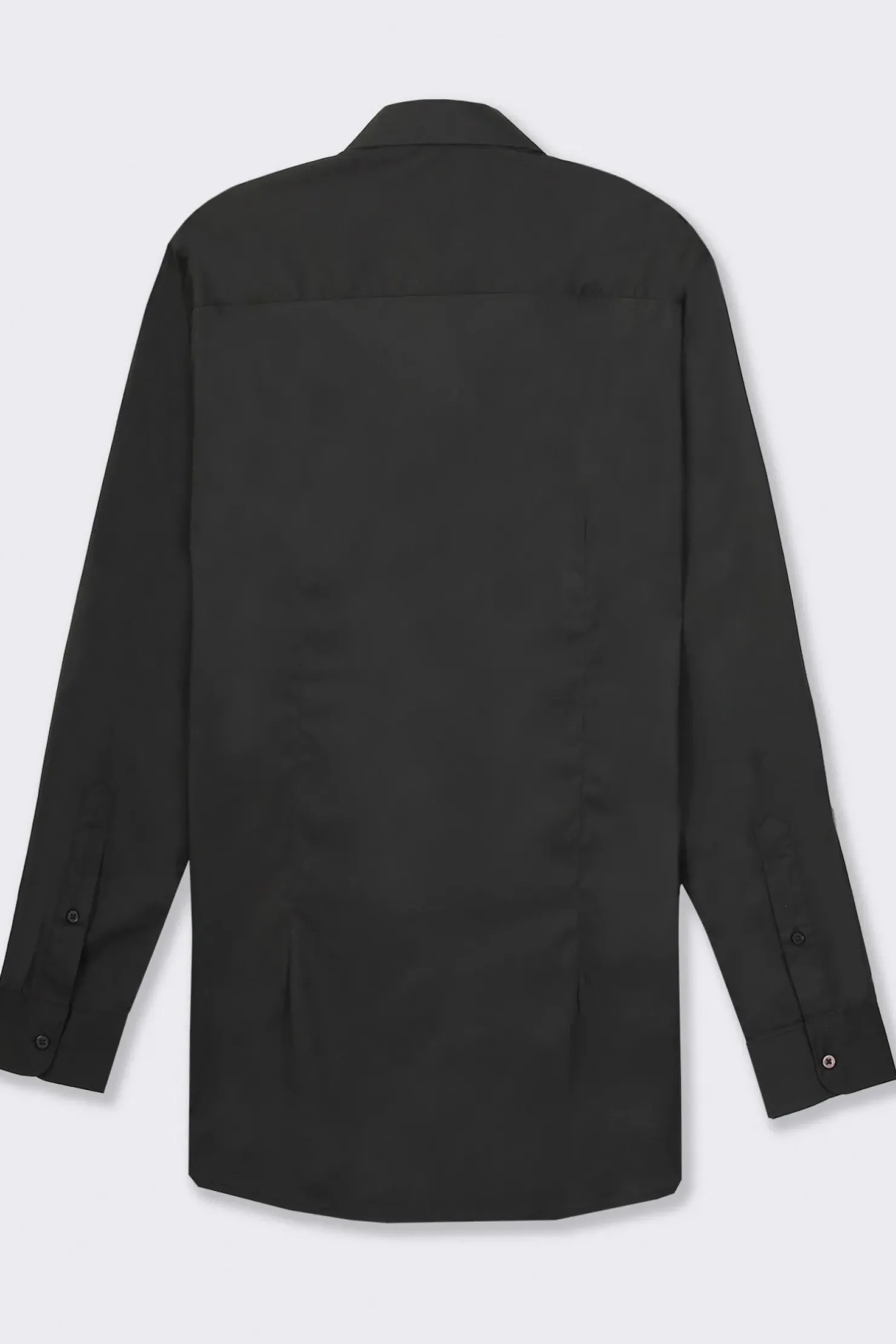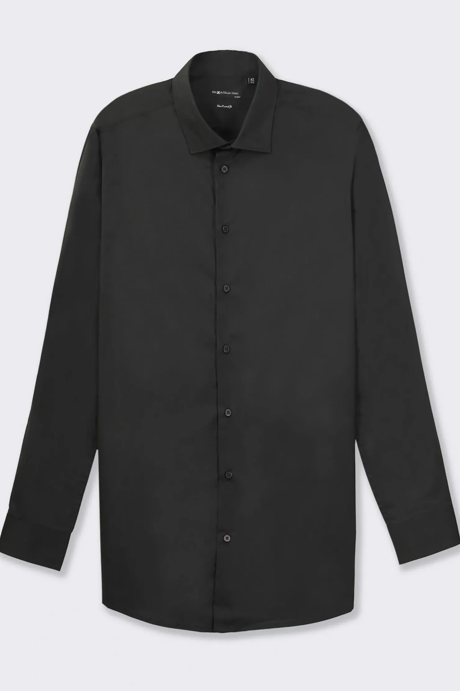 Piazza Italia Camicia realizzata in tessuto di cotone elasticizzato con collo francese e maniche lunghe – Nero Sale