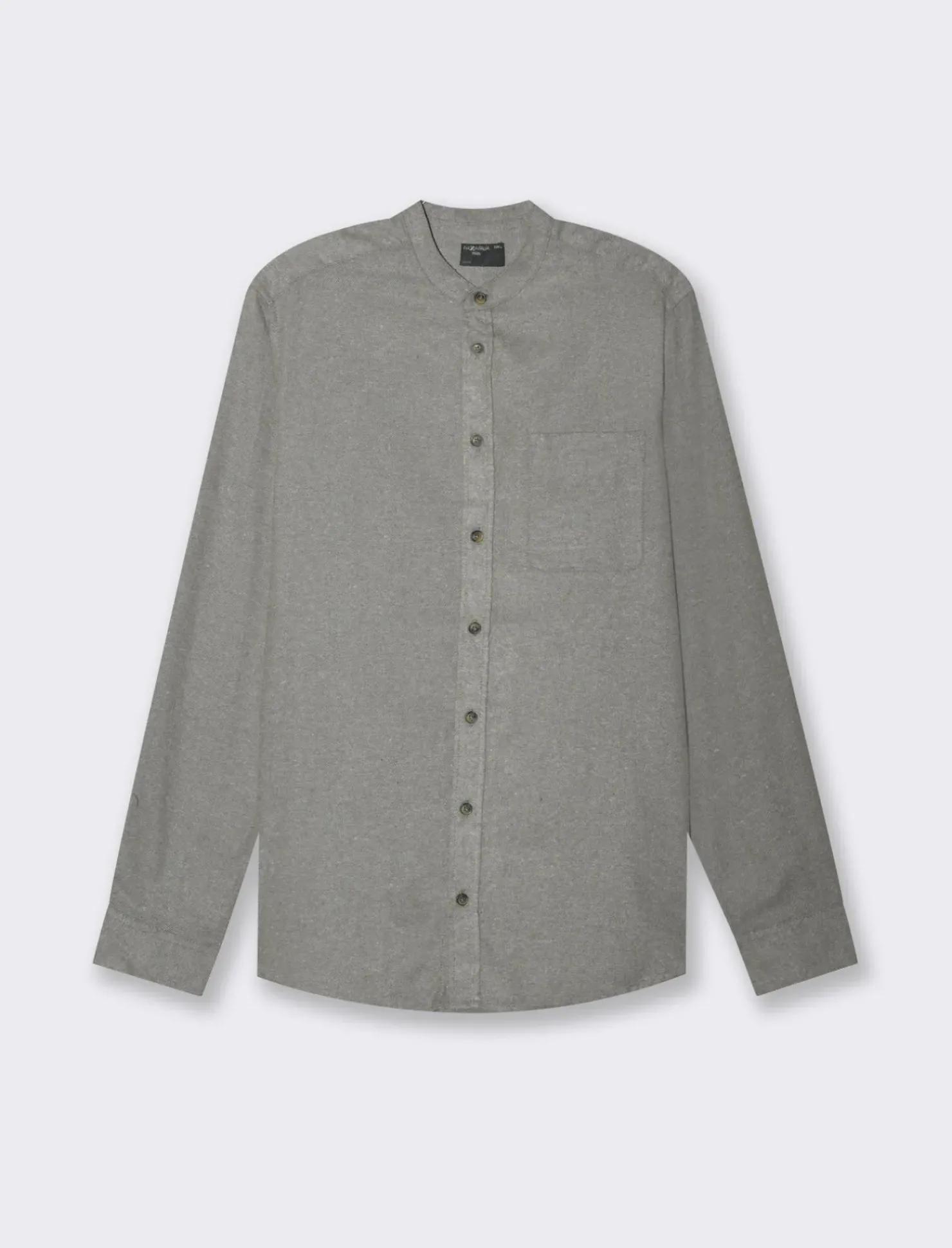 Camicia coreana in flanella: un capo versatile e confortevole per l’uomo moderno. Realizzata in morbido tessuto di misto cotone, questa camicia regular fit presenta un elegante colletto coreano e pratiche tasche sul petto. Le maniche lunghe con bottone sul polsino aggiungono un tocco di stile, mentre la chiusura frontale con bottoni a vista completa il look. Il prodotto è di colore Verde militare